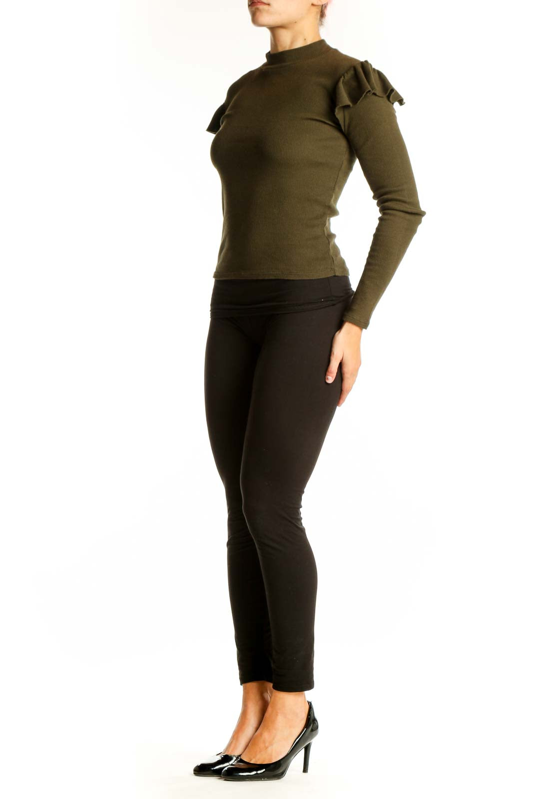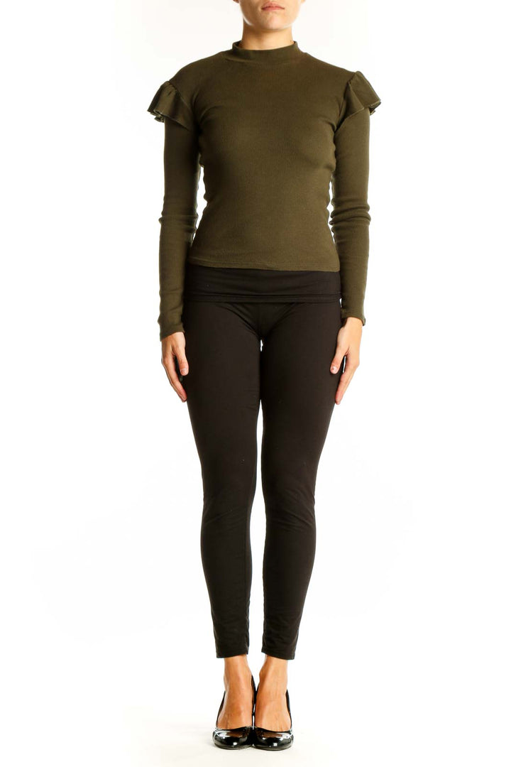 Elevate your casual wardrobe with this chic olive ribbed top from Zara Trafaluc. Featuring a mock neck and long sleeves adorned with delicate ruffle details at the shoulders, this top combines comfort with style. The ribbed texture adds a touch of sophistication, while the fitted silhouette flatters your figure.