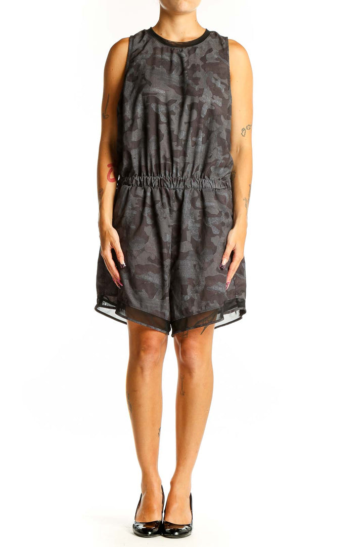 Step out in style with this chic gray camo print romper from Zella. Perfect for casual outings or lounging at home, this all-in-one piece features a sleek sleeveless design and a comfortable elastic waistband. The subtle camouflage pattern in shades of gray adds a trendy edge to this versatile garment.