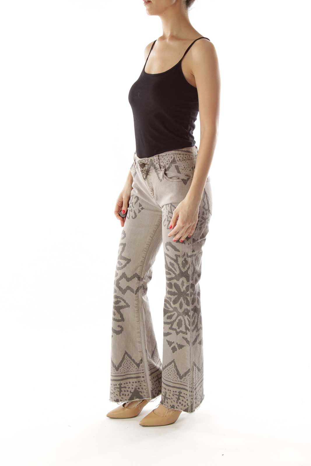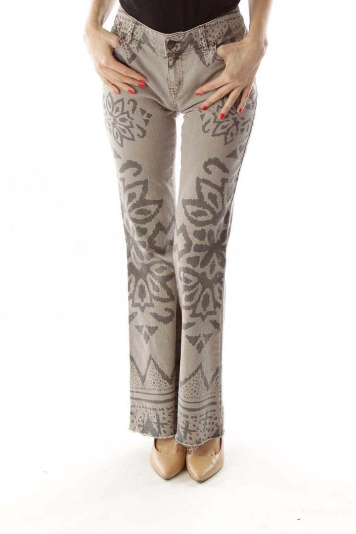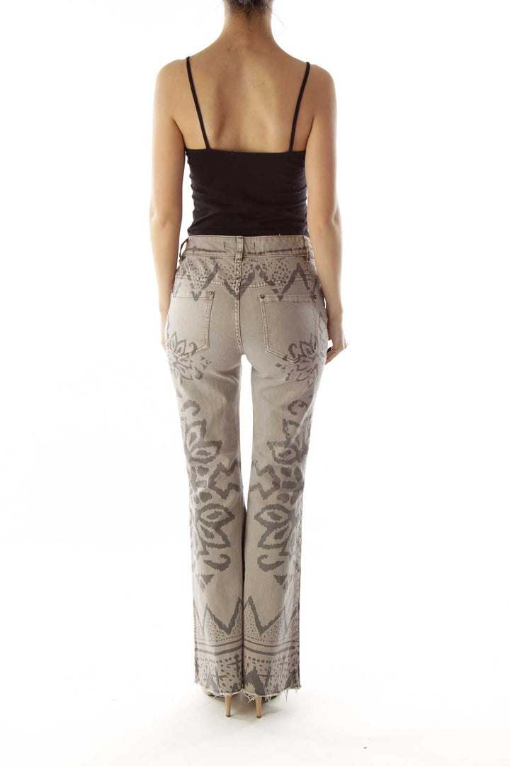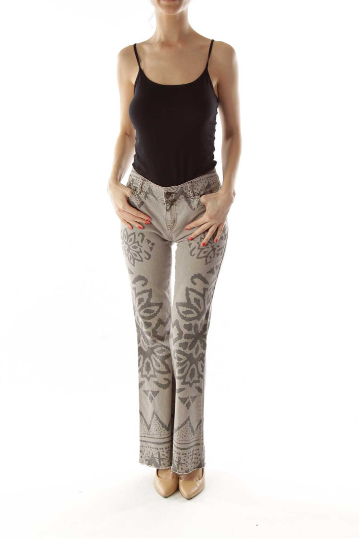 Make a statement with these unique beige denim jeans from Free People. Featuring an eye-catching floral embroidery pattern in a darker shade, these jeans offer a perfect blend of bohemian charm and casual comfort. The intricate design adorns the legs, creating a stunning visual effect that's sure to turn heads.