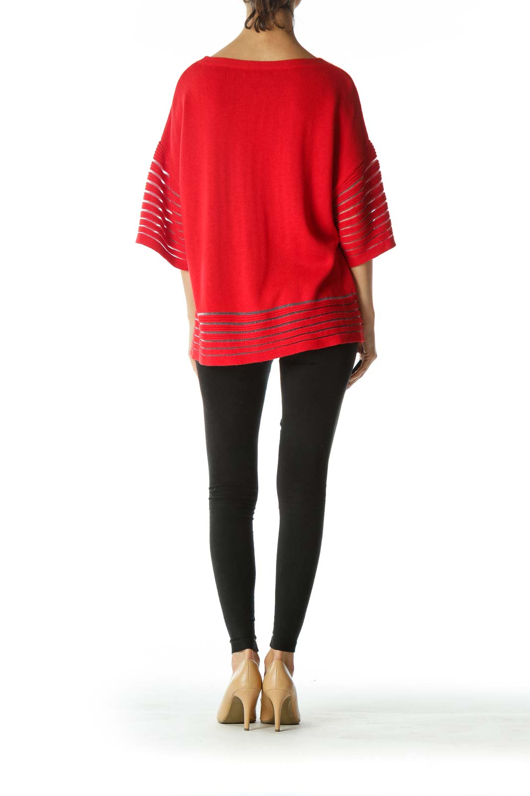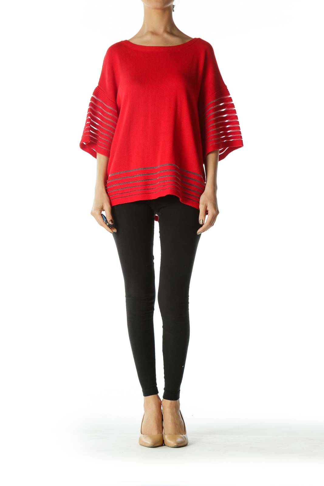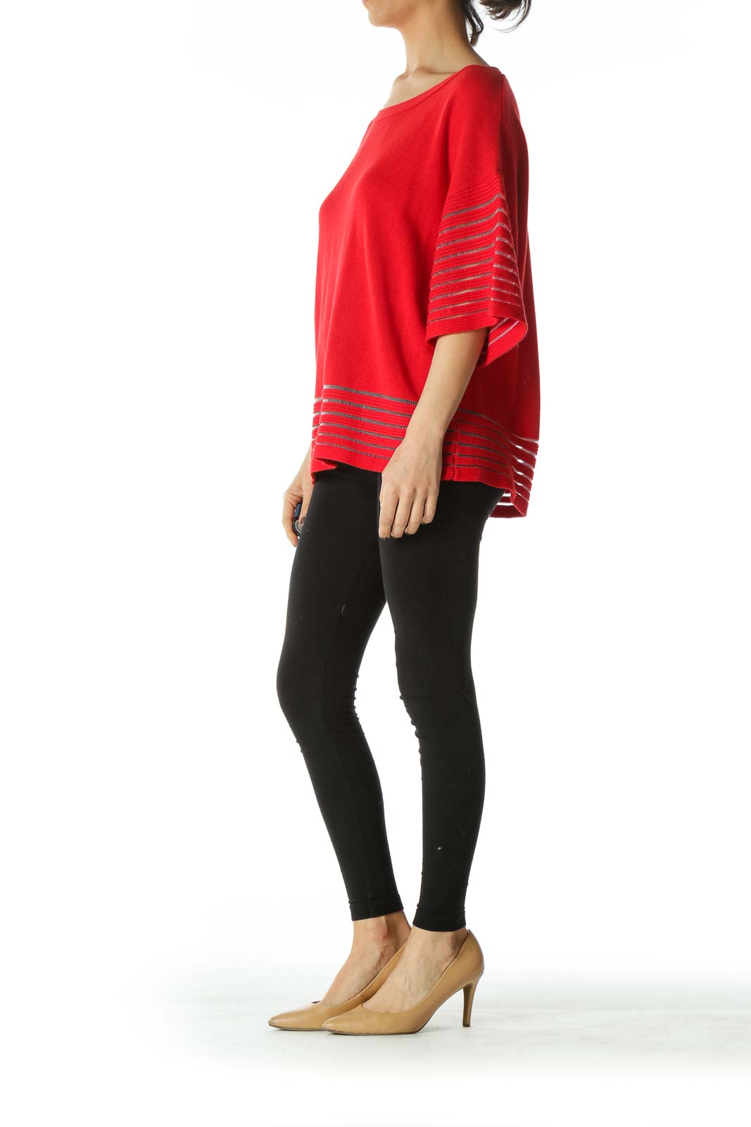 Bright Red Over-Sized Short-Sleeve Knit With Lace Contrast on Hem