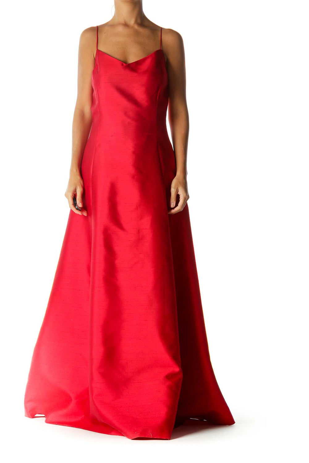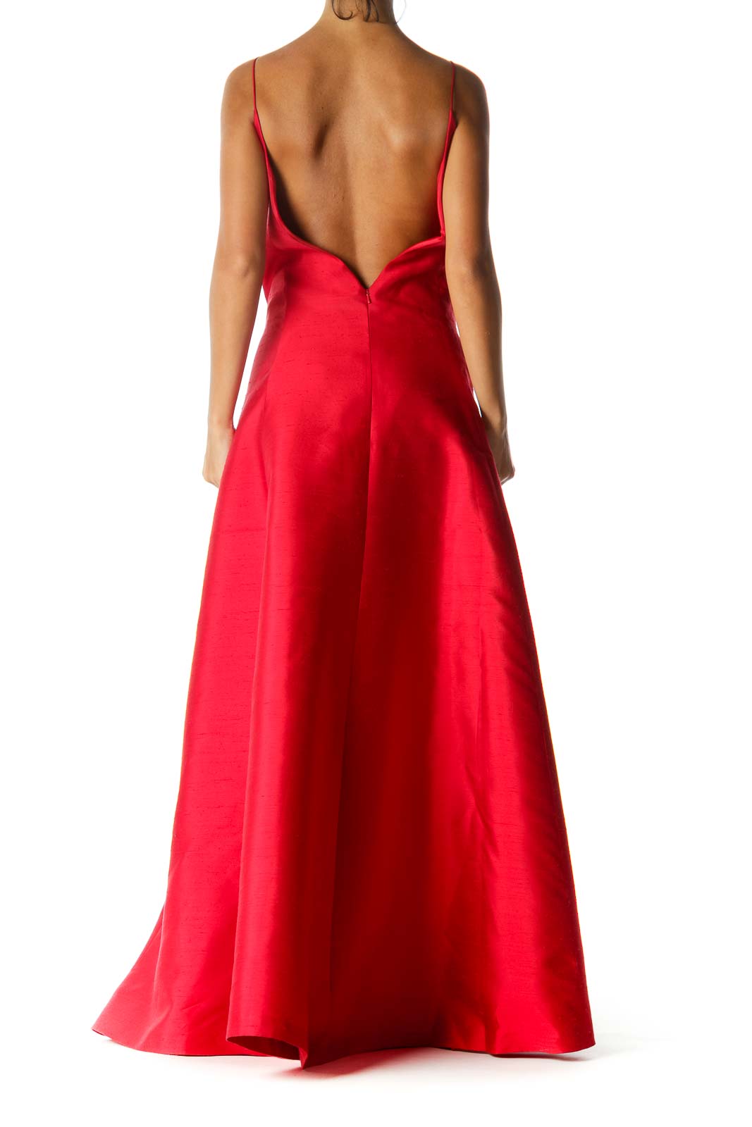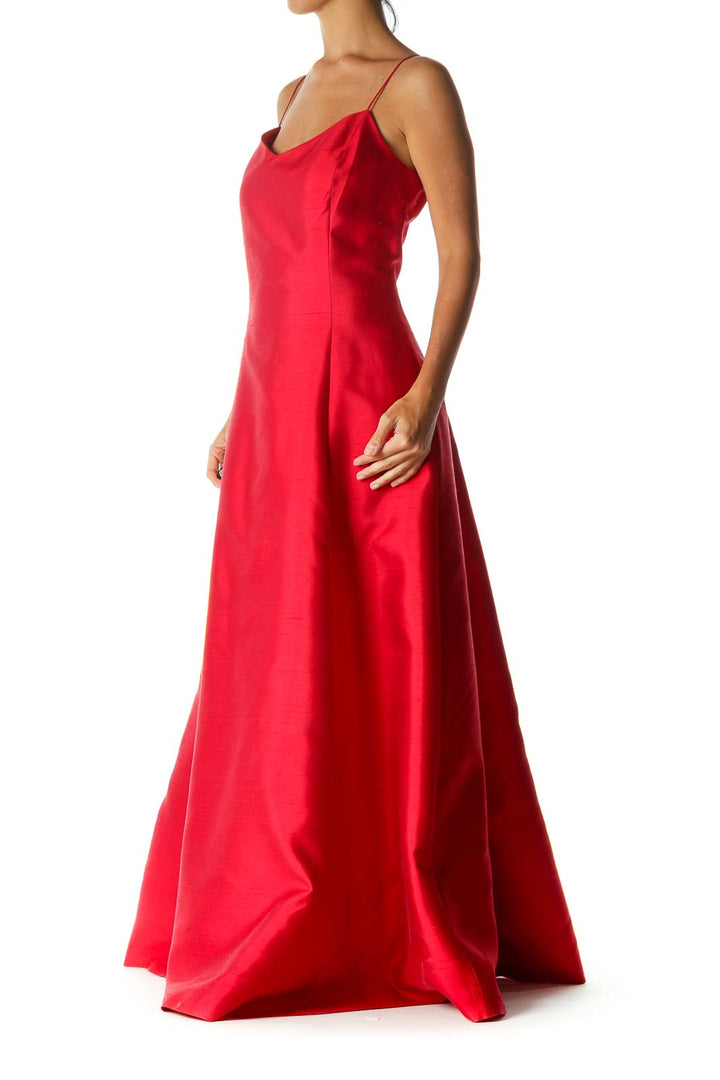 Red Silk Blend Sweetheart Neckline Spaghetti Strap Back V-Neck Evening Dress