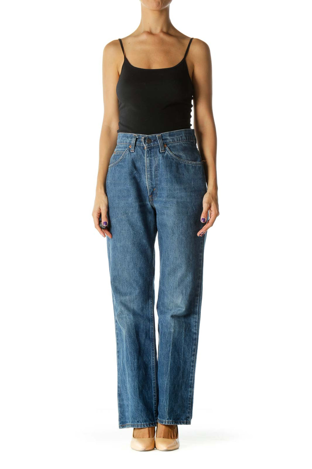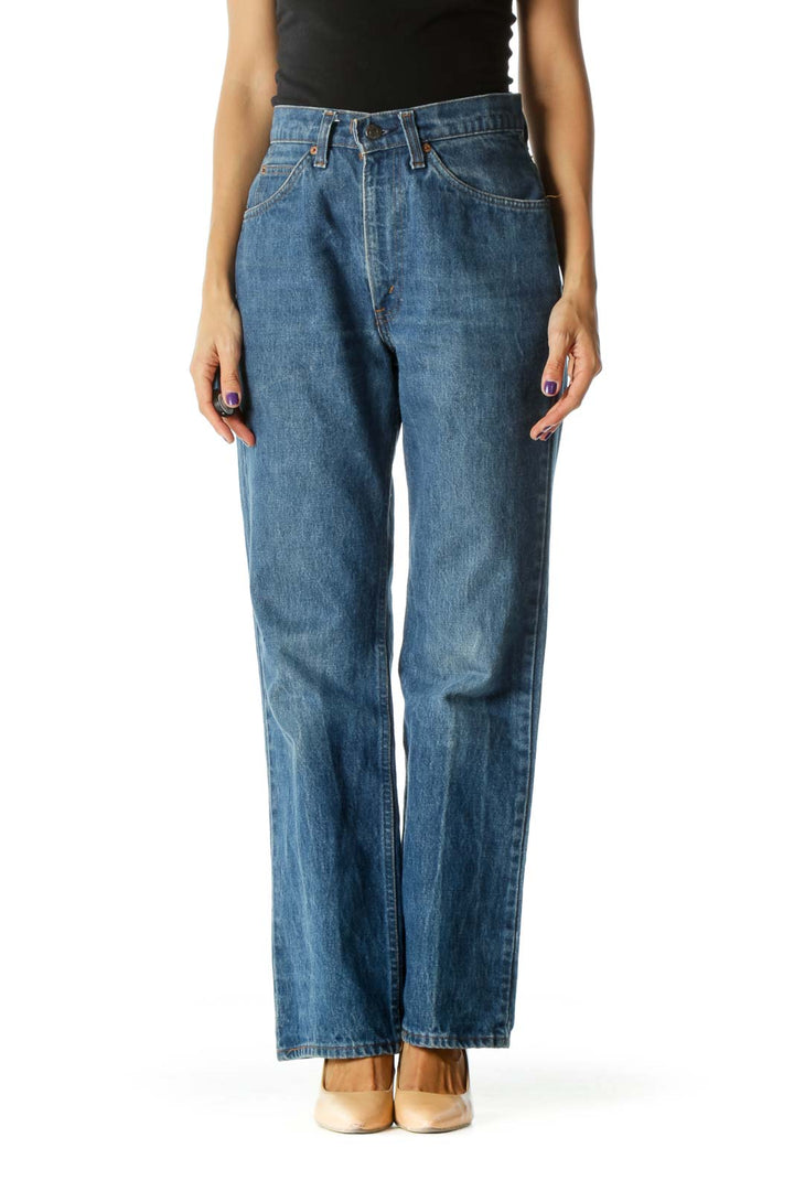 Blue Medium Wash 100% Cotton High-Rise Flared Denim Jeans