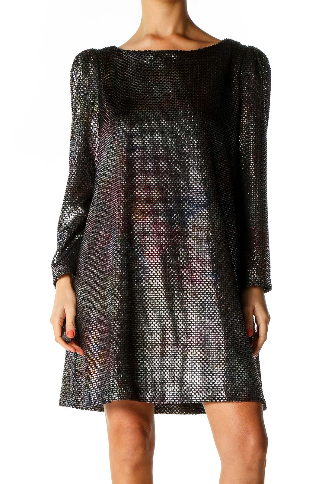 Crafted with a boat neckline and long sleeves, this dress combines elegance with a touch of modesty. The knee-length cut adds versatility, making it suitable for various occasions from cocktail parties to formal events. The loose fit through the body provides ease of movement and a forgiving shape that flatters many body types.