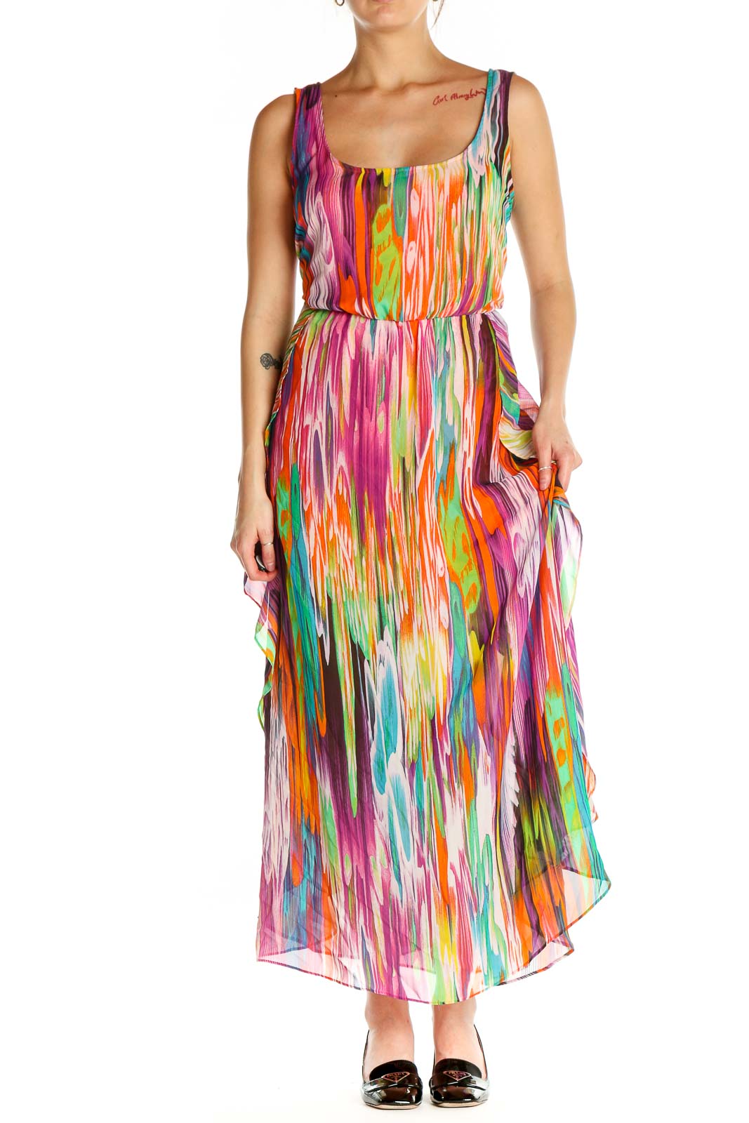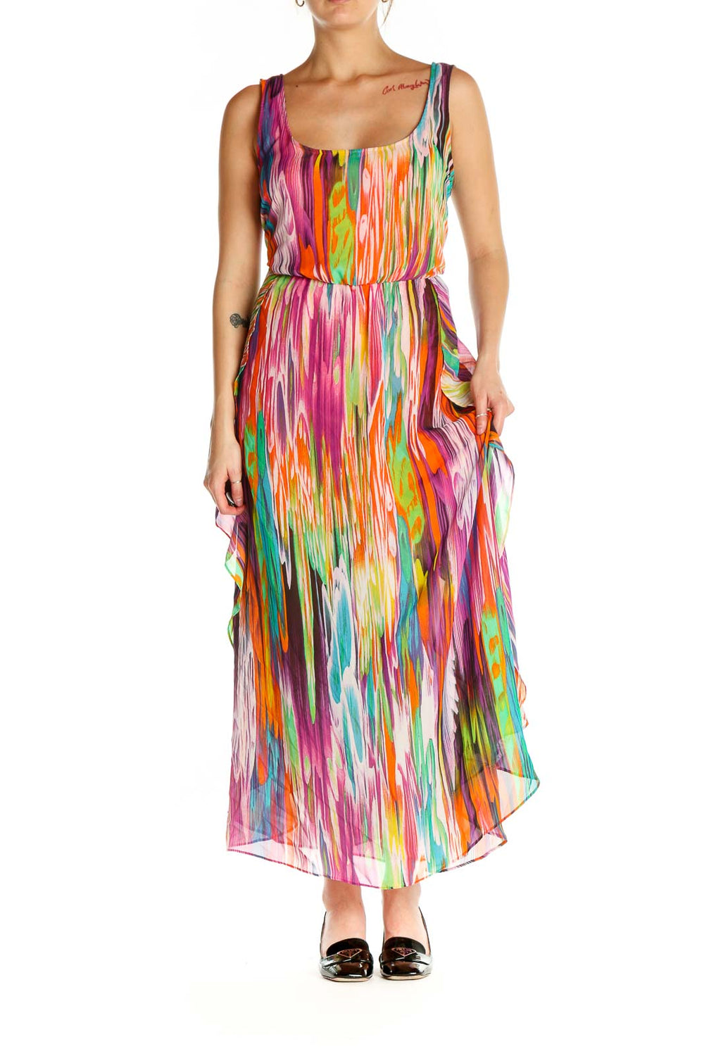 - Measurements: Bust 36", Hips 44", Length 55", Waist 28"