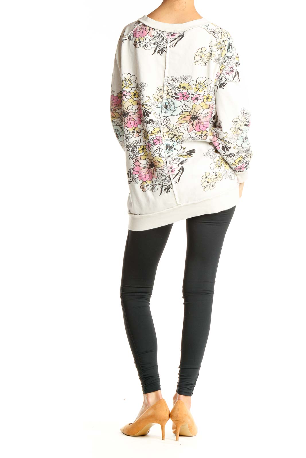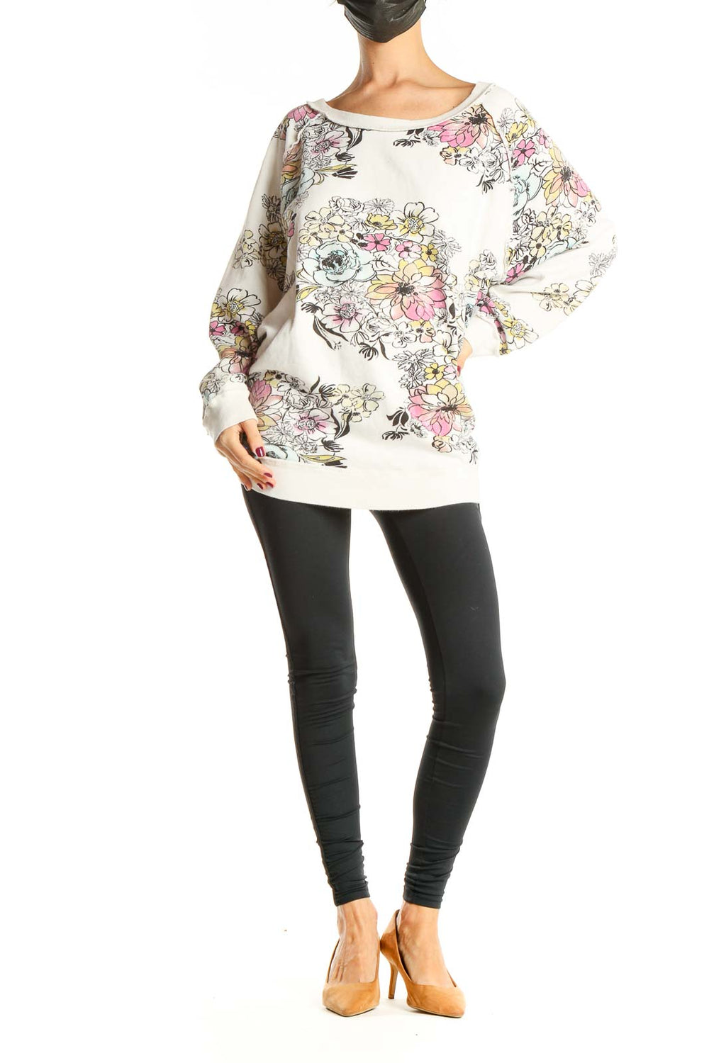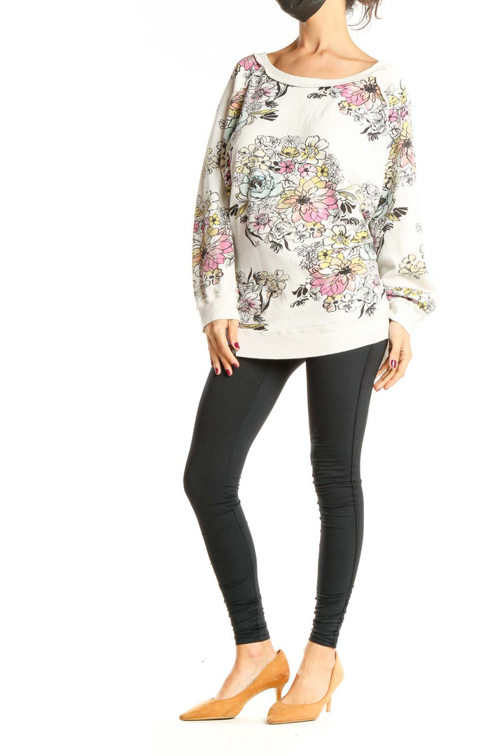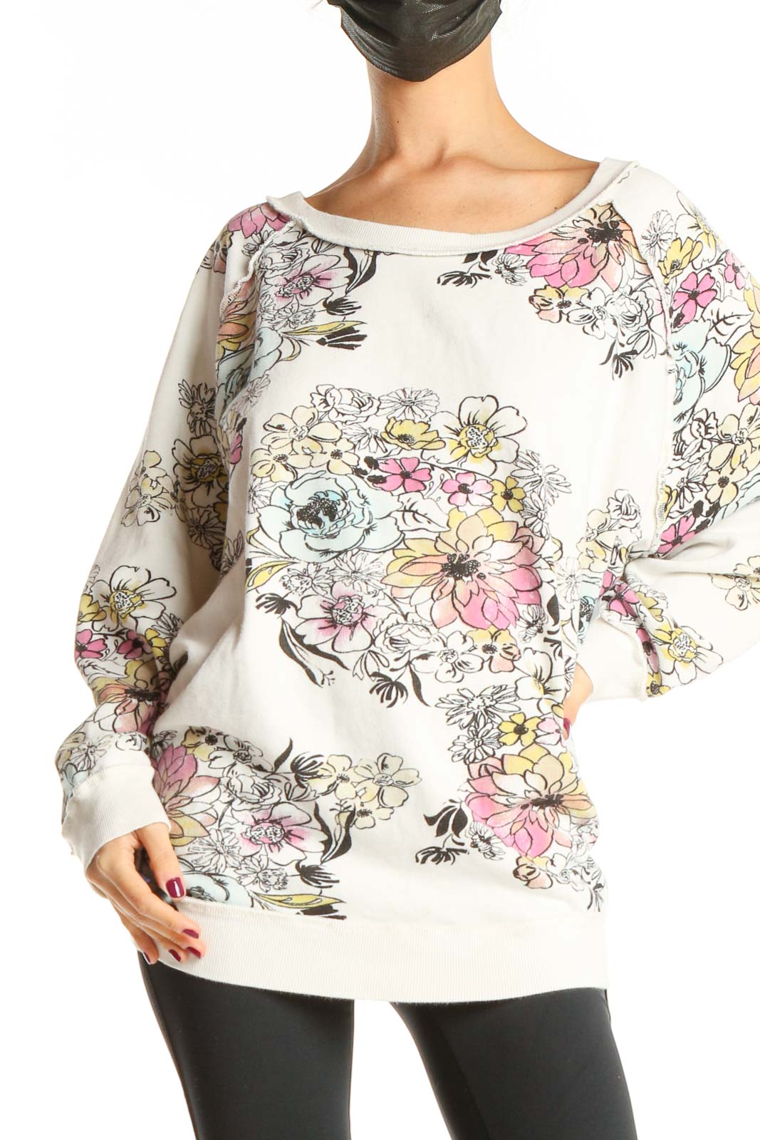 Embrace effortless style with this charming Free People oversized sweatshirt in a soft white hue. The standout feature is its beautiful floral print, showcasing a delightful array of pink, yellow, and blue blooms that dance across the fabric. Perfect for those who love a relaxed yet feminine look.