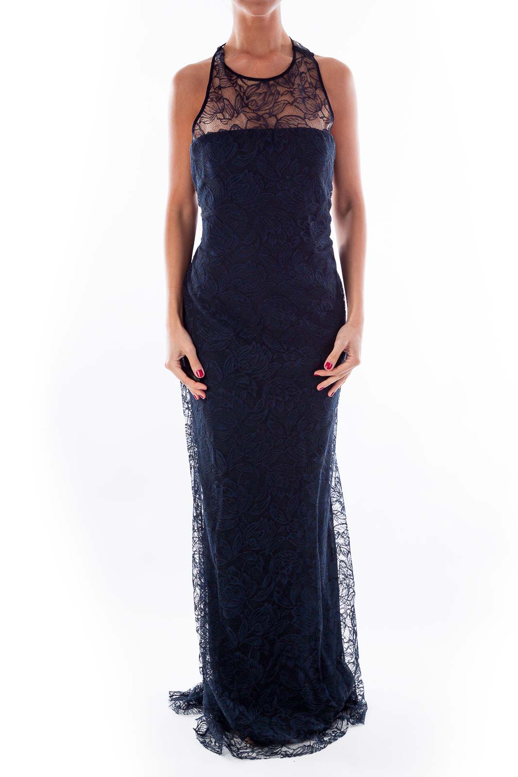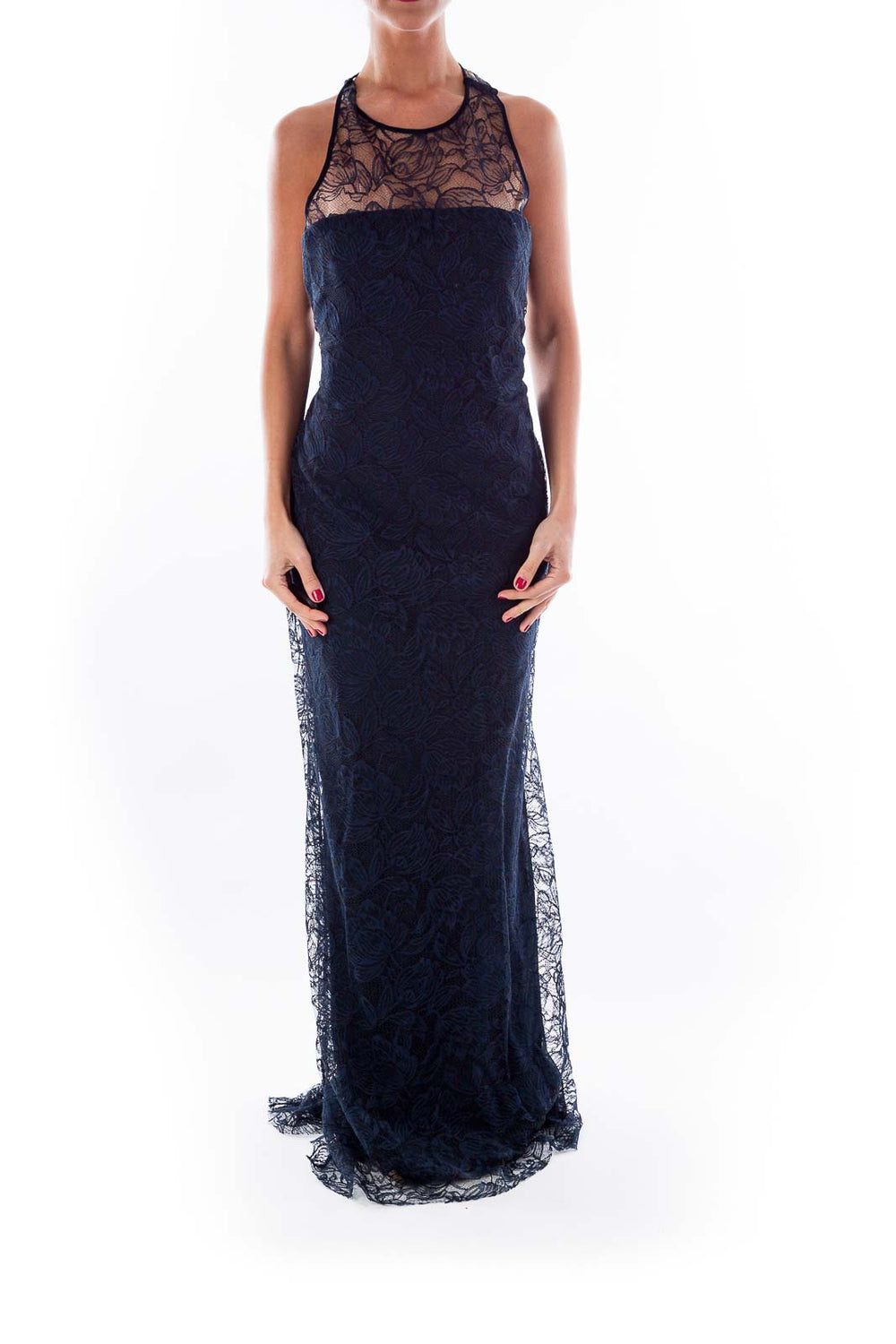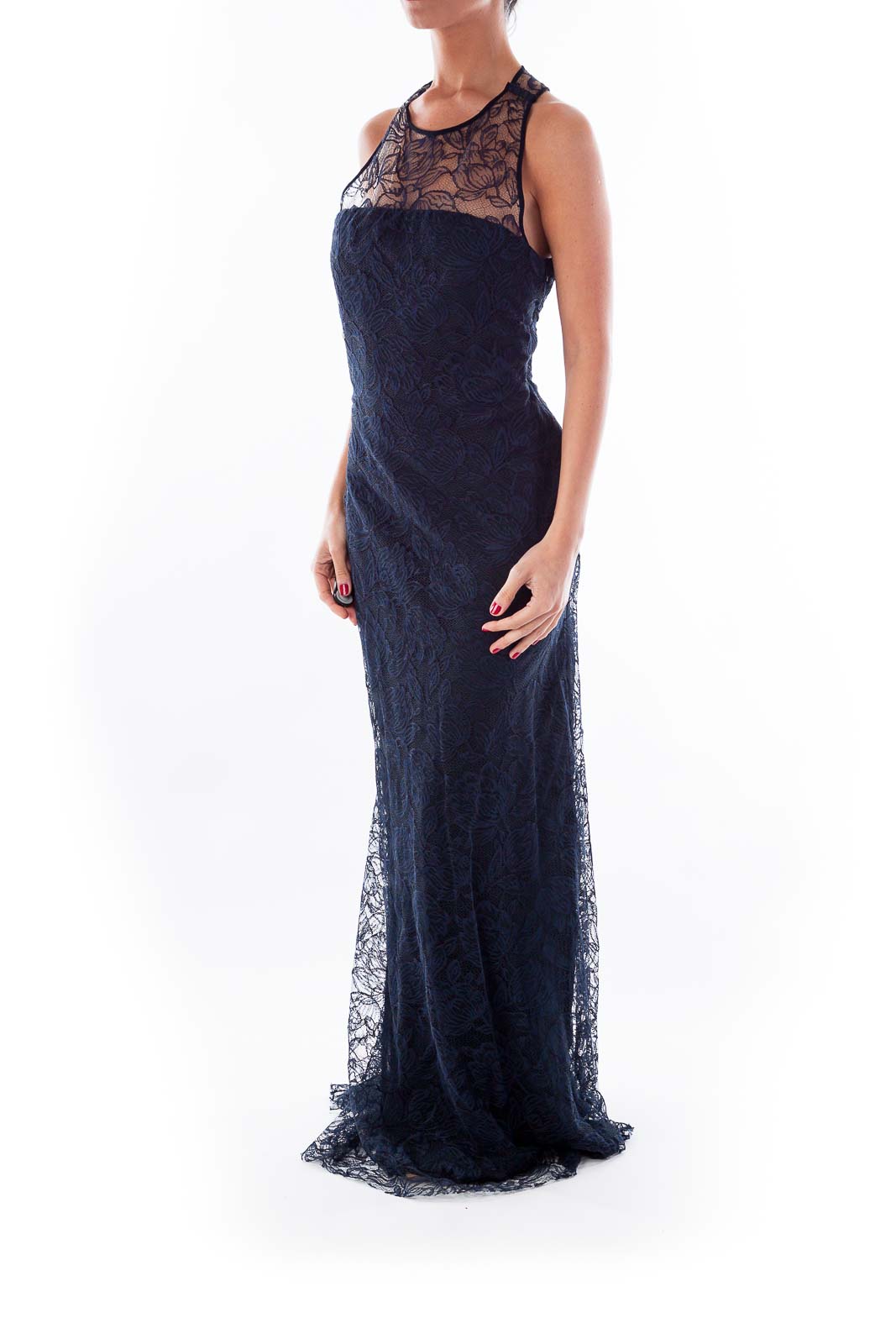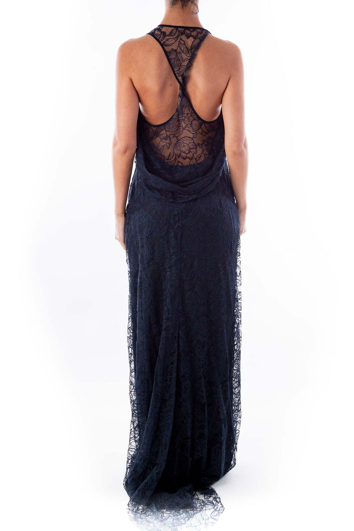 Navy Lace Evening Gown