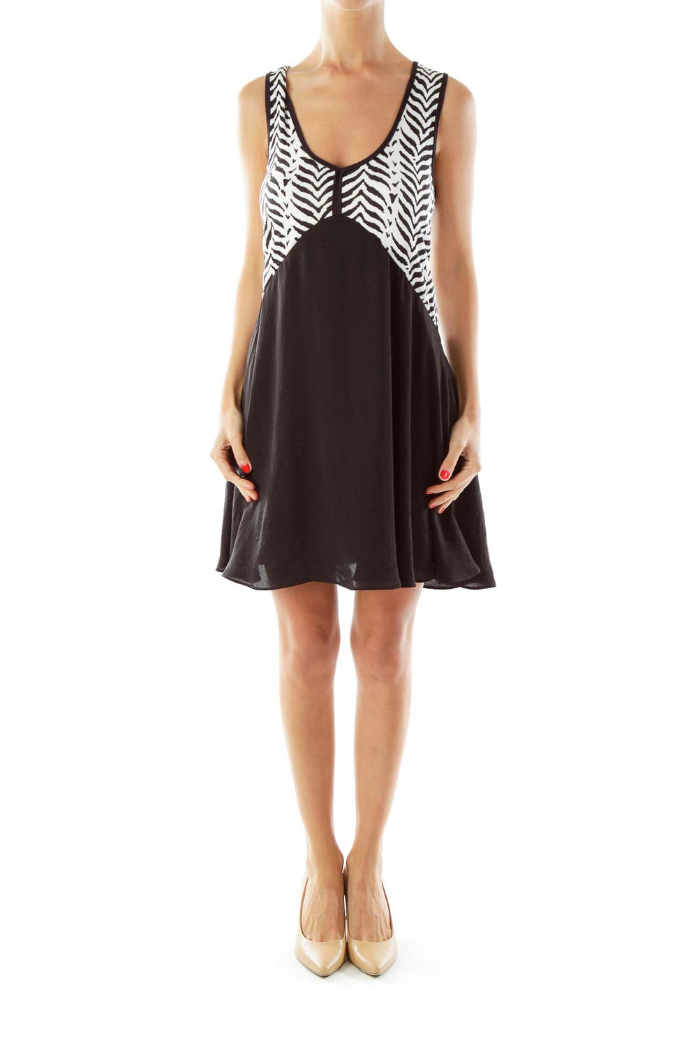 Make a statement with this eye-catching Free People dress featuring a bold black and white chevron print. The sleeveless design showcases a flattering scoop neckline and a unique cut-out detail on the back, perfect for warm weather occasions. The dress combines a fitted bodice with a flowy skirt, creating a feminine silhouette that's both comfortable and stylish. The contrast between the patterned top and solid black skirt adds visual interest and versatility to this piece. In excellent condition, this size small dress is ideal for various events, from casual outings to semi-formal gatherings. The measurements (Bust 30", Waist 36") ensure a comfortable fit for a range of body types. Elevate your wardrobe with this chic and versatile Free People dress that effortlessly blends modern design with timeless appeal.