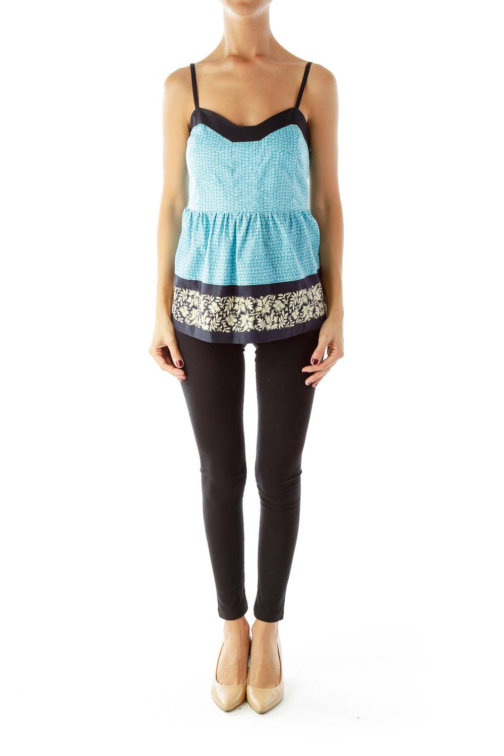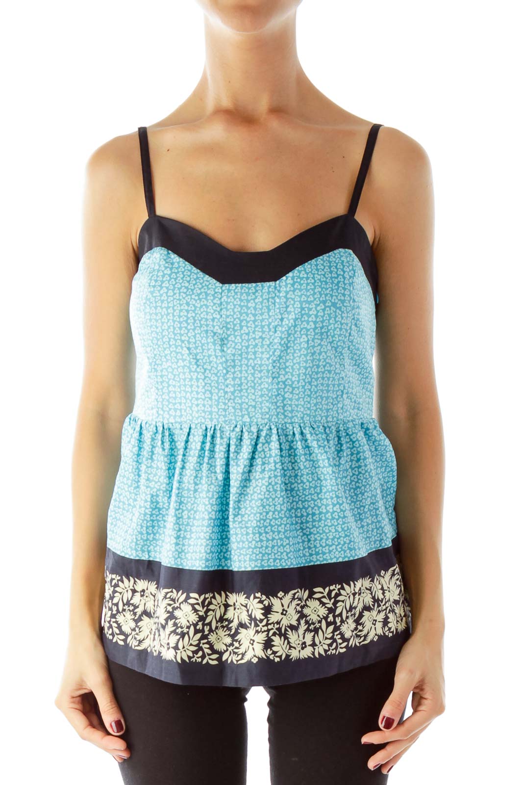 Blue Printed Floral Tank Top