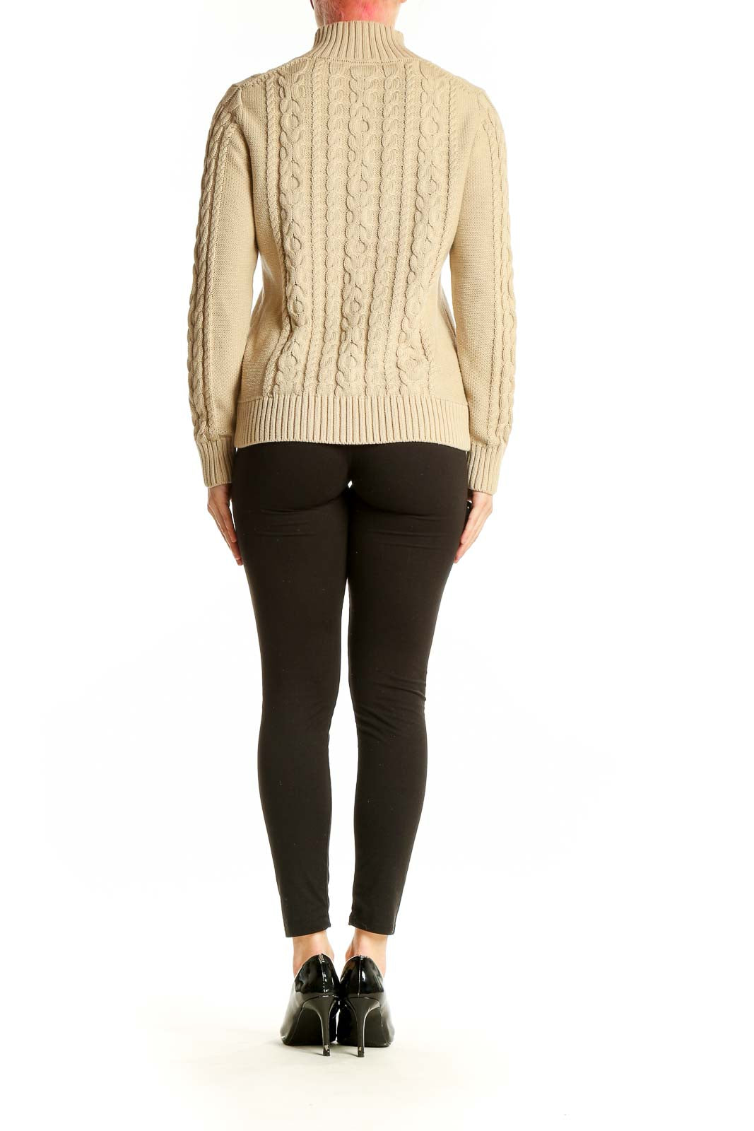 Wrap yourself in cozy comfort with this classic beige cable knit cardigan from L.L.Bean. Crafted from soft, durable cotton, this zip-up sweater features an intricate cable knit pattern that adds texture and visual interest. The full-length zipper allows for versatile styling, while the stand-up collar provides extra warmth on chilly days. With a flattering fit that hits at the hip, this cardigan is perfect for layering over your favorite tops. The excellent condition ensures you'll enjoy this timeless piece for seasons to come. Whether you're heading to the office or enjoying a weekend outing, this L.L.Bean cardigan is a wardrobe essential that combines style and practicality.