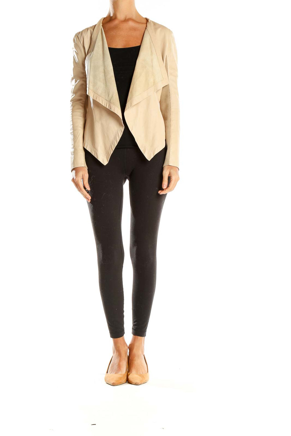 Crafted with attention to detail, this jacket boasts long sleeves and a cropped length that hits just at the waist, making it ideal for pairing with high-waisted bottoms. The soft beige hue is a timeless neutral that effortlessly complements a variety of colors and patterns in your existing wardrobe.