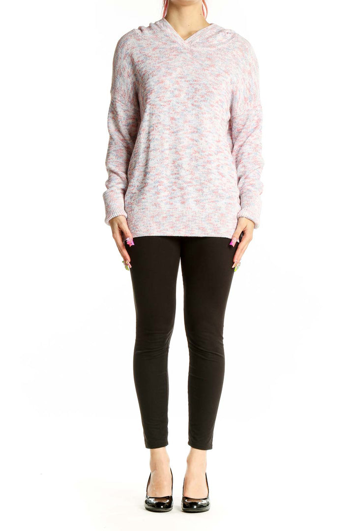 Embrace comfort and style with this charming pink marled hooded knit sweater from Gap. Perfect for casual outings or cozy days at home, this medium-sized sweater offers a relaxed fit with a flattering v-neck and convenient hood. The unique marled pattern blends soft pink tones with white for a subtle, eye-catching effect.