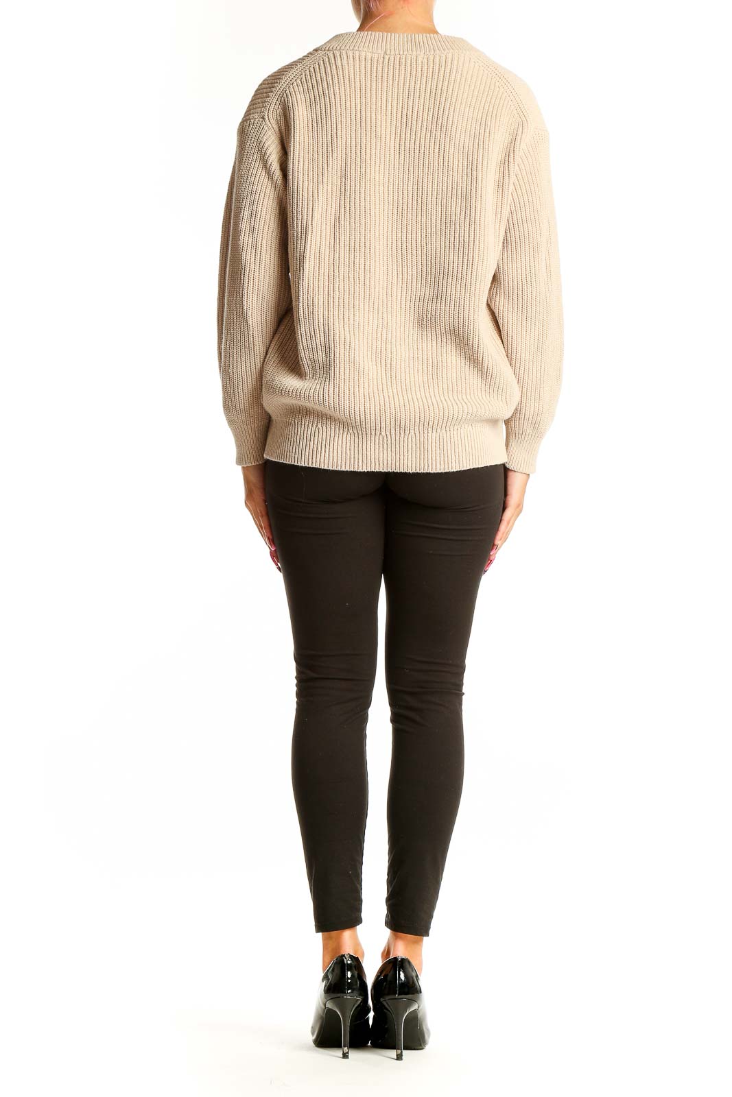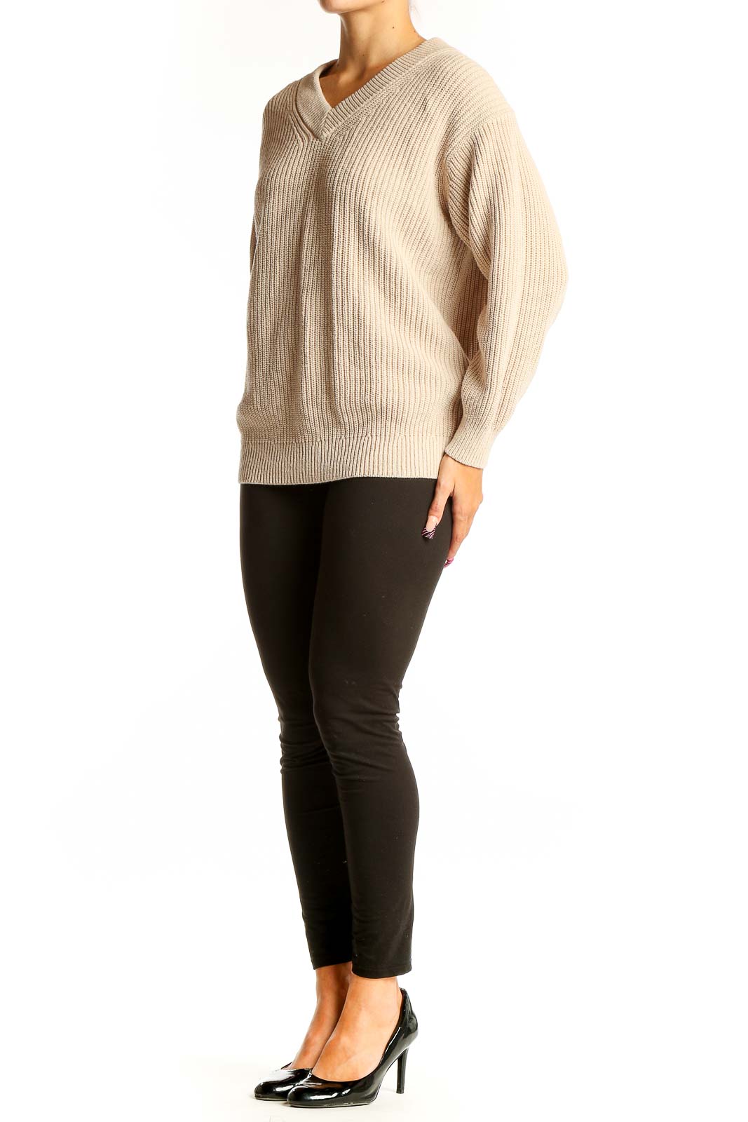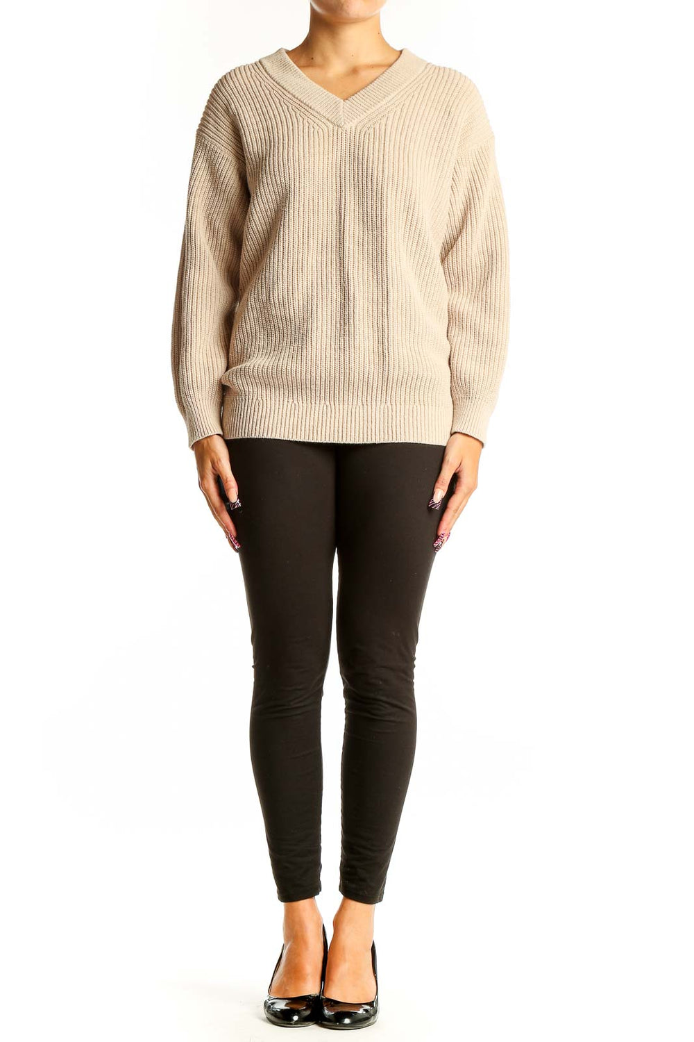 Elevate your casual wardrobe with this sophisticated beige ribbed V-neck sweater from Uniqlo. Crafted from a cozy blend of acrylic and cotton, this sweater offers both warmth and breathability, making it perfect for layering or wearing on its own. The classic ribbed texture adds visual interest and a touch of elegance to this versatile piece.