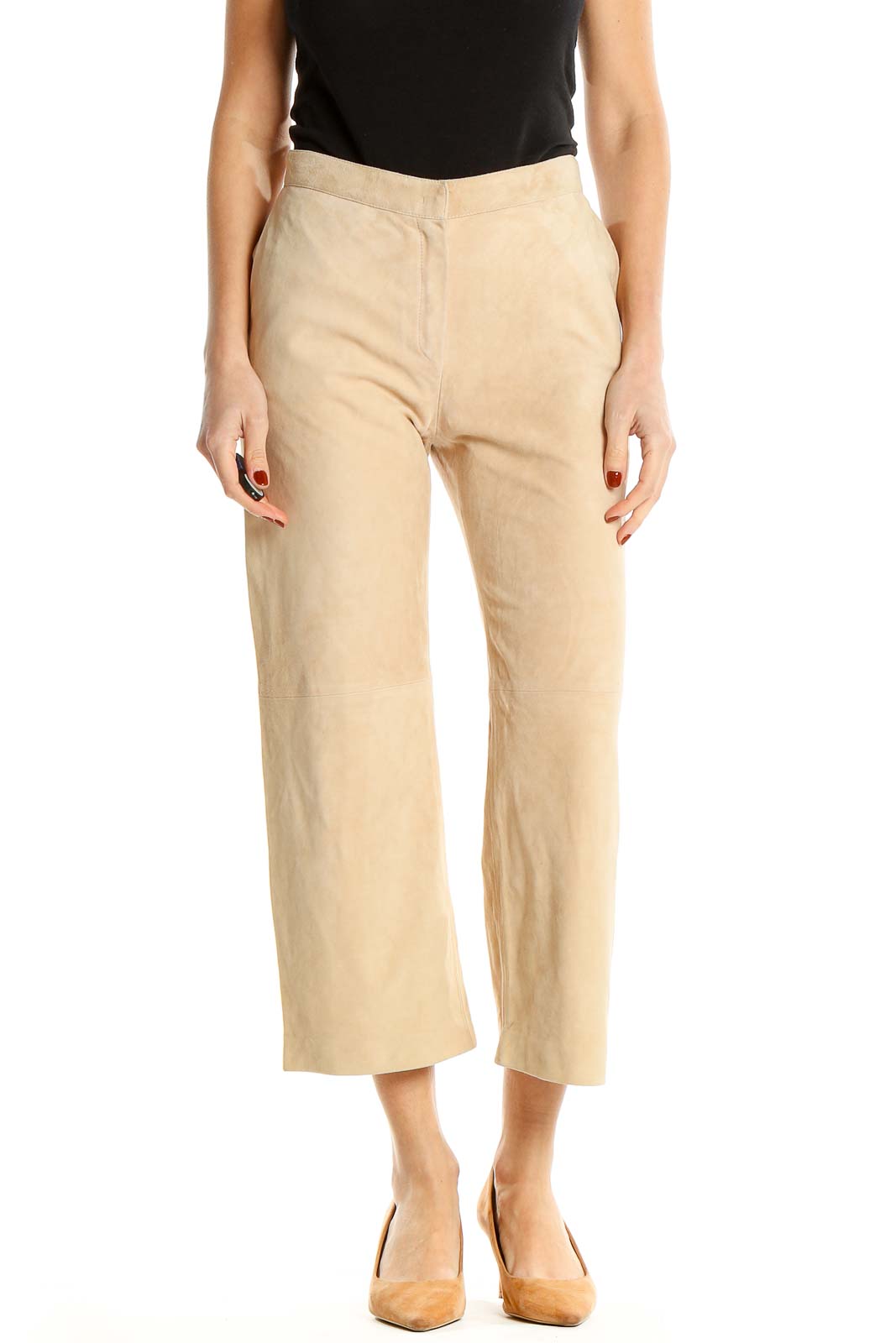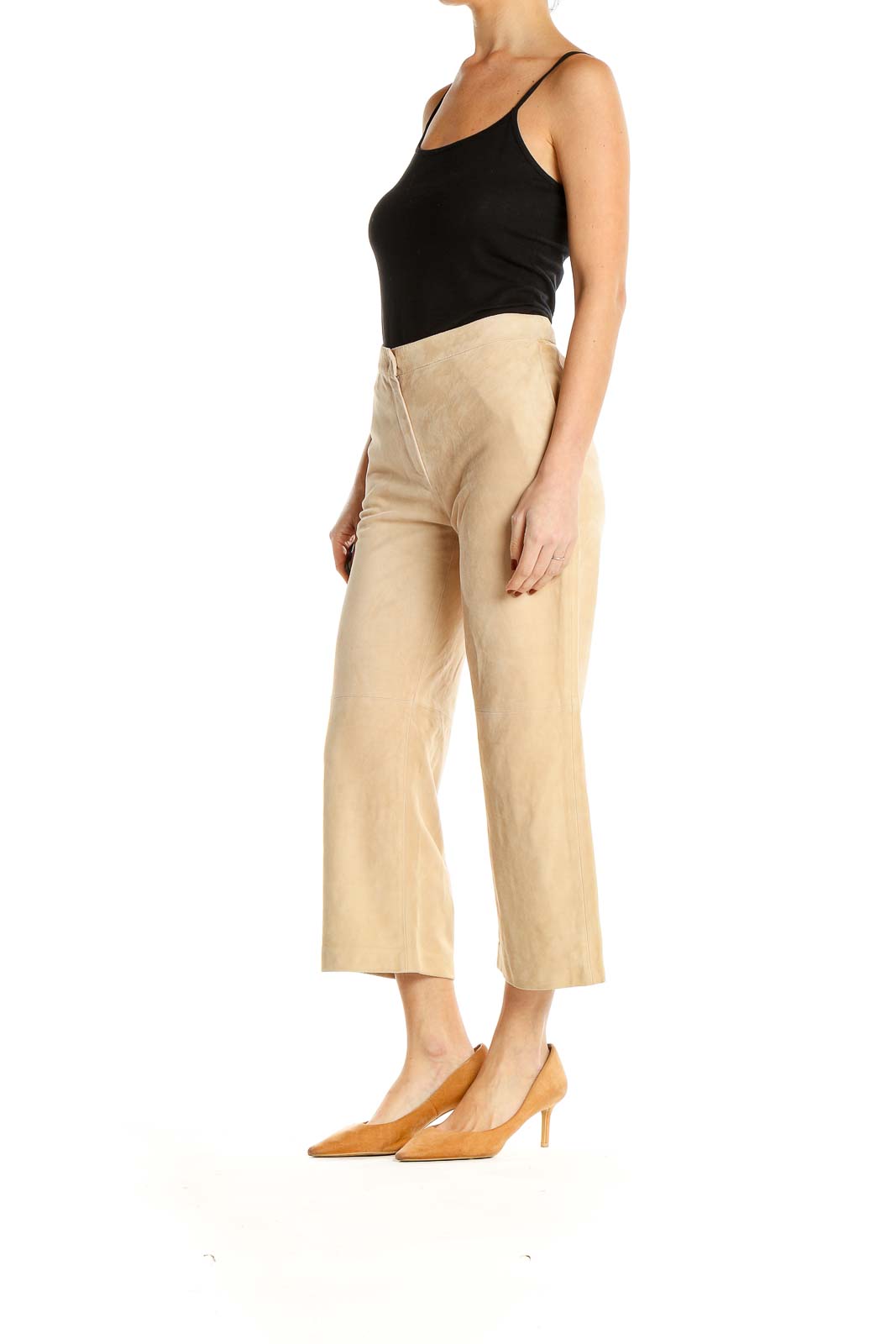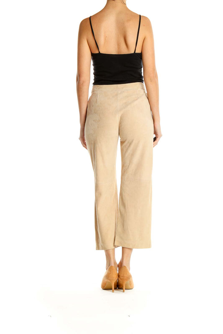 Beige Wide-Leg Cropped Trousers