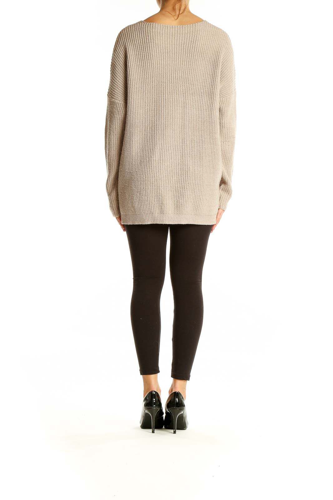 Embrace cozy elegance with this beige wrap-style oversized knit sweater from ASTR. The plunging V-neckline created by the wrap design adds a touch of allure, while the generous fit ensures ultimate comfort. Crafted from a soft blend of acrylic and polyester, this sweater offers warmth without bulk, making it perfect for layering or wearing on its own.