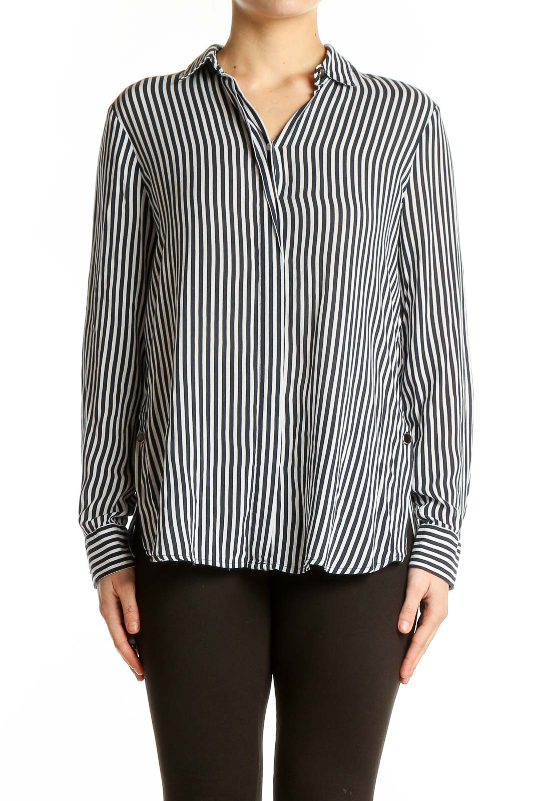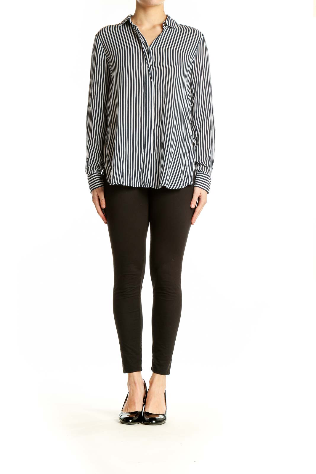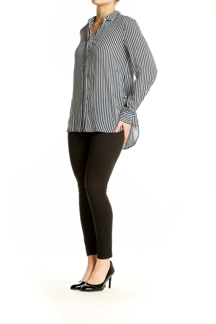 Make a bold statement with this chic Black and White Striped Button-Up Shirt from Zara Basic. This versatile top features a classic vertical stripe pattern that elongates your silhouette and adds a touch of sophistication to any outfit. The long sleeves with buttoned cuffs offer adjustable comfort, while the collared neckline adds a polished finish.