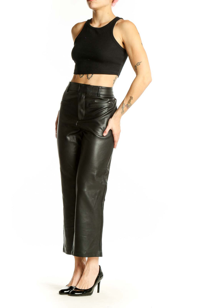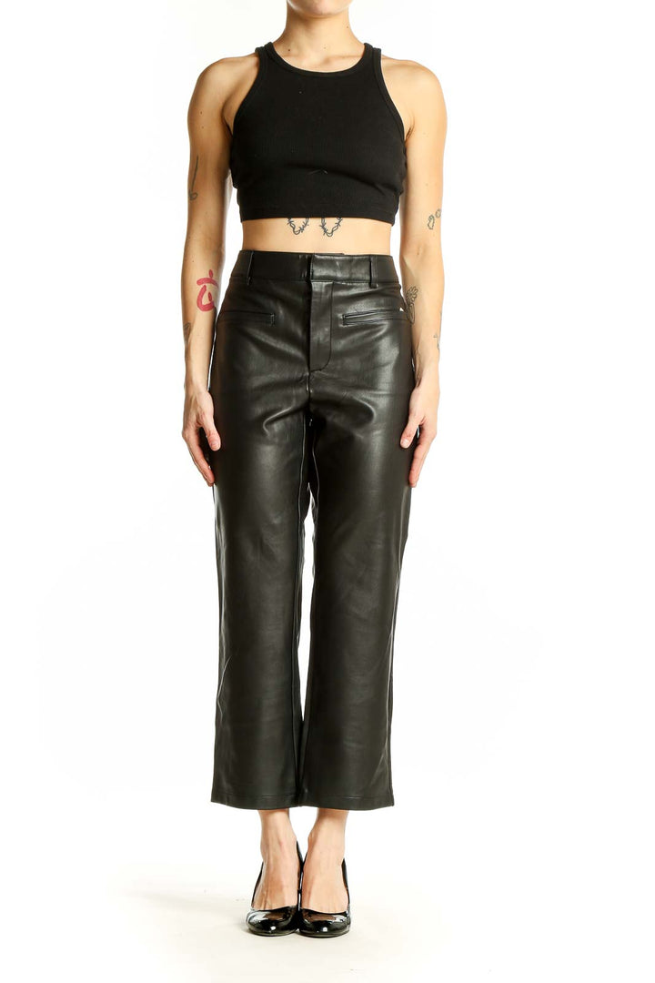 Make a bold statement with these sleek black faux leather wide-leg cropped pants from Maeve. Crafted from a luxurious blend of viscose and elastane, these pants offer both style and comfort. The high-waisted design flatters your figure, while the wide-leg silhouette adds a touch of drama to your look. Cropped at the ankle, they're perfect for showcasing your favorite shoes. The pants feature functional zip pockets and a smooth front closure for a polished appearance. With their versatile design, these pants can easily transition from day to night, making them a must-have addition to your wardrobe. Brand new with tags, they're ready to elevate your outfit game.