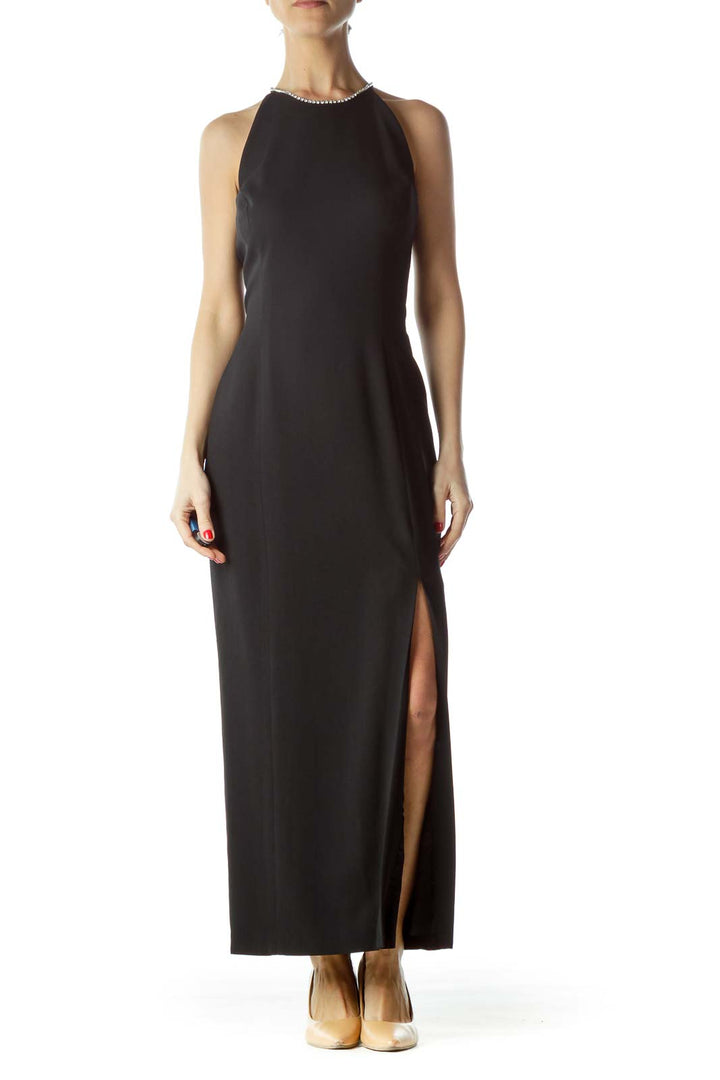 The dress features a daring side slit, allowing for ease of movement and a hint of allure. Its fitted waist accentuates your curves, while the flowing skirt adds drama and elegance. The backless design adds a sultry touch, making this dress a showstopper from every angle.