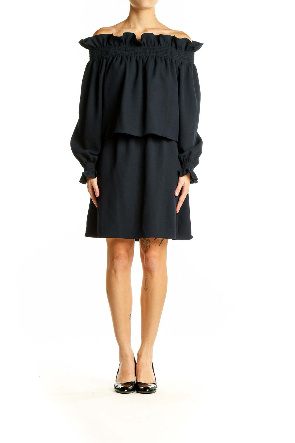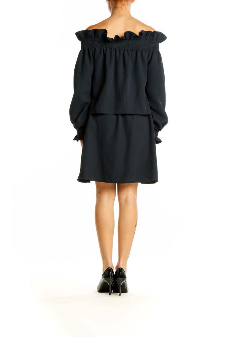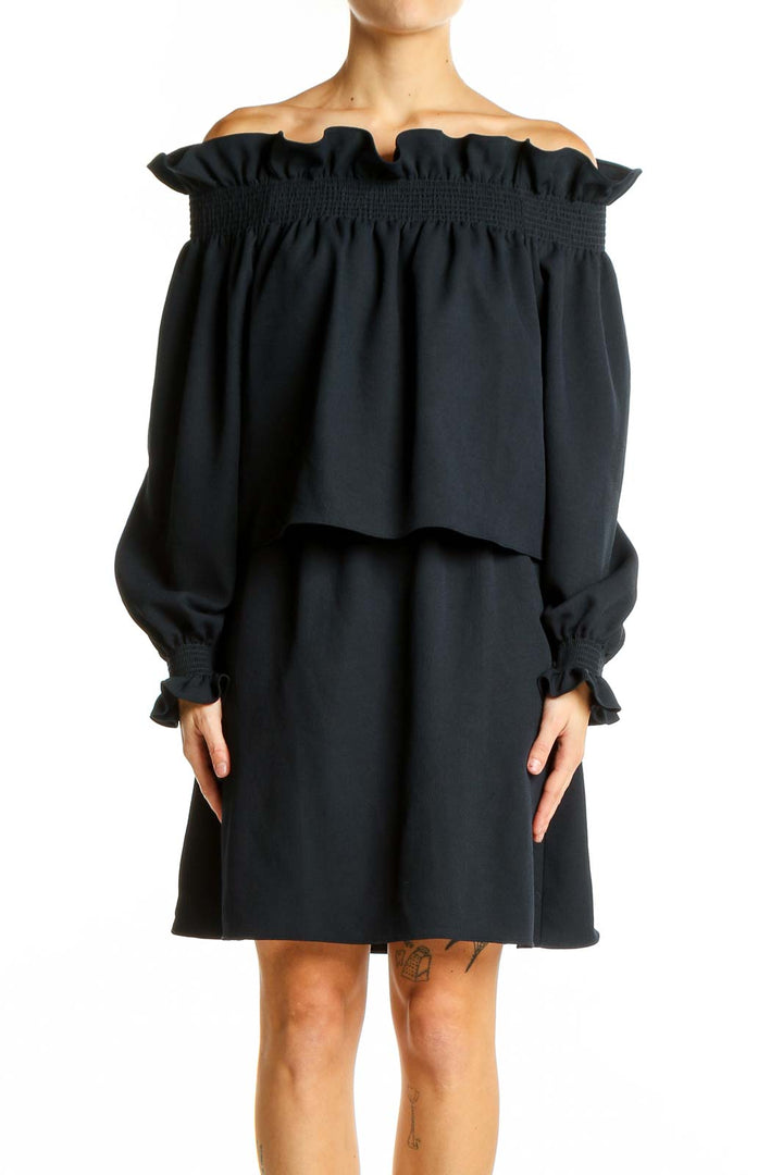 Make a statement with this chic black off-shoulder mini dress by Diane von Furstenberg. The dress features a flattering ruffled neckline that adds a touch of romance to the sleek silhouette. Crafted from a comfortable blend of polyester and spandex, this dress offers both style and ease of movement.