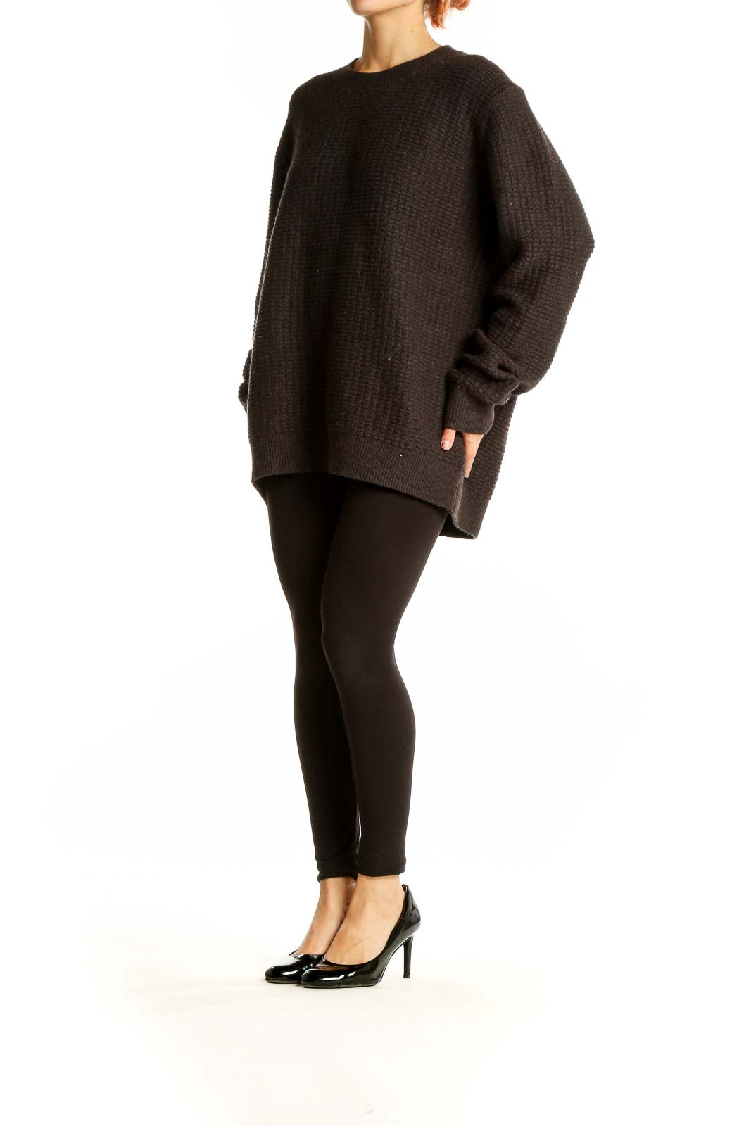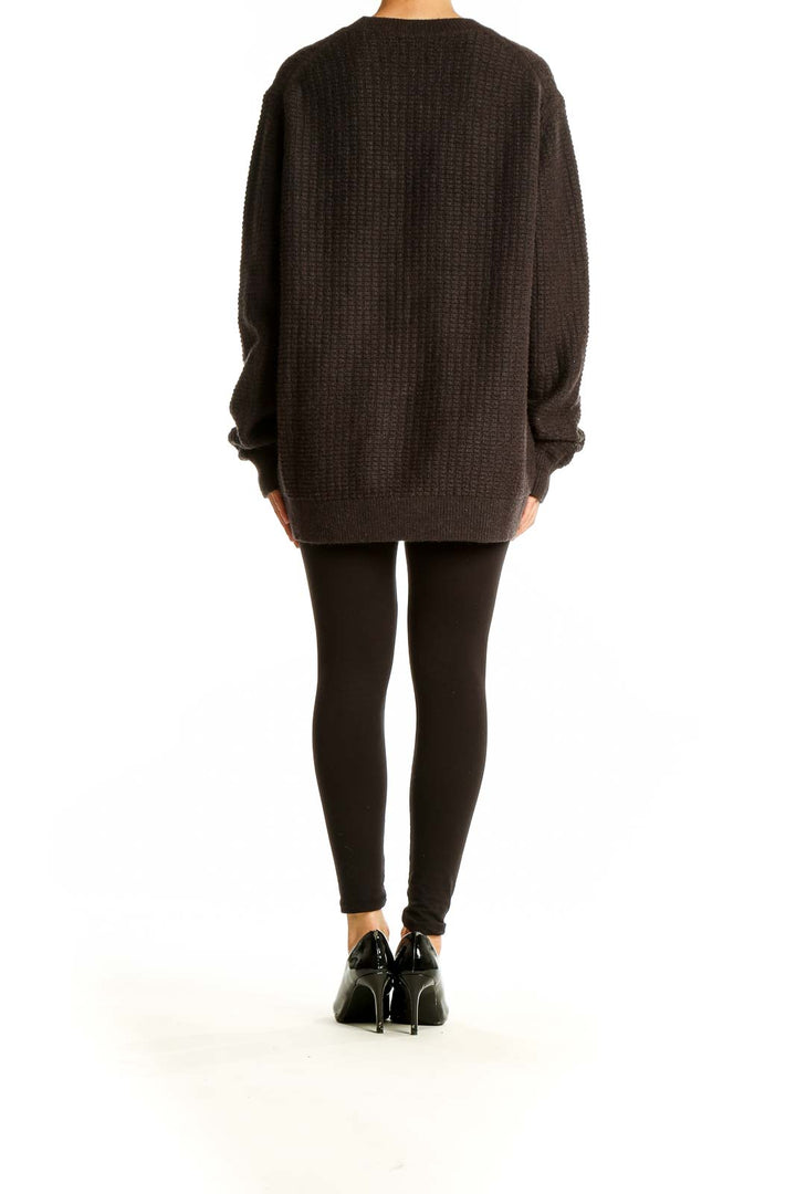 Crafted from a soft blend of acrylic, cotton, polyester, and spandex, this sweater offers both warmth and flexibility. The crew neckline adds a classic touch, while the long sleeves with ribbed cuffs provide extra coziness. The generous length allows for versatile styling options, whether you prefer to tuck it in or leave it loose.