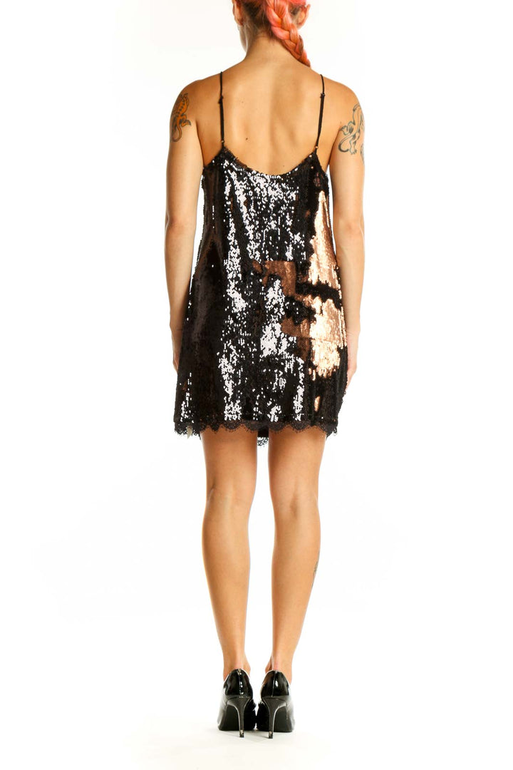 Dazzle the night away in this stunning black sequin slip dress from Intimately Free People. This eye-catching piece features a flattering V-neckline and delicate spaghetti straps, perfect for showing off your shoulders. The body-skimming silhouette is adorned with shimmering sequins that catch the light with every movement, creating a mesmerizing effect. A romantic lace trim adds a touch of femininity to the hemline, falling at a flirty mini length.