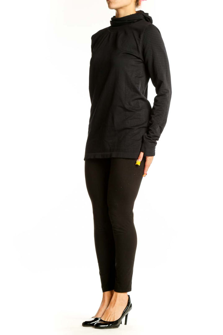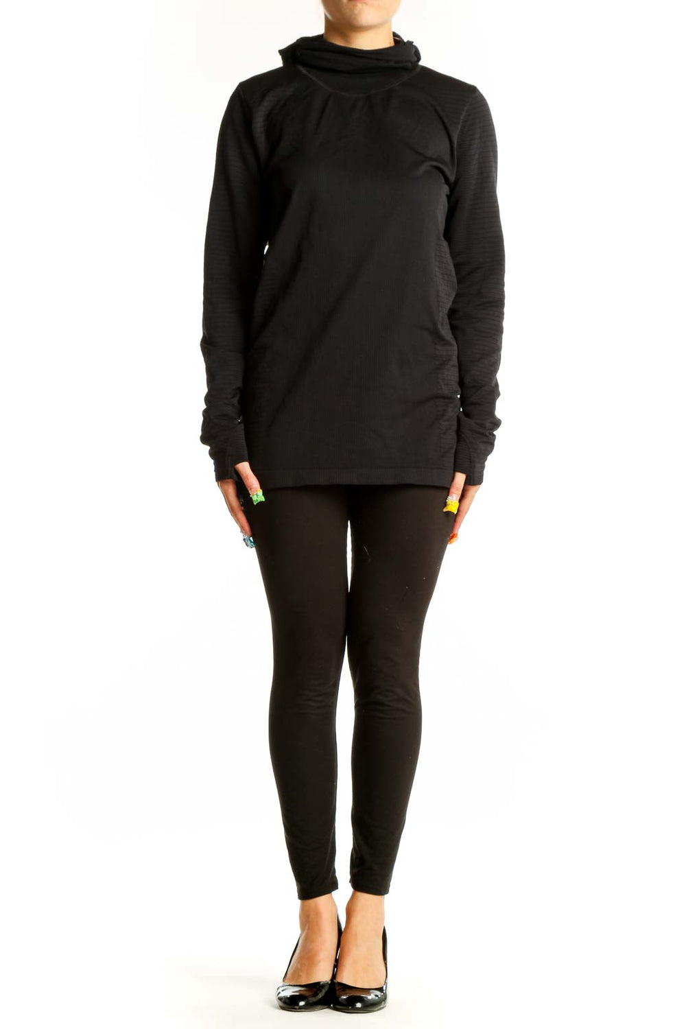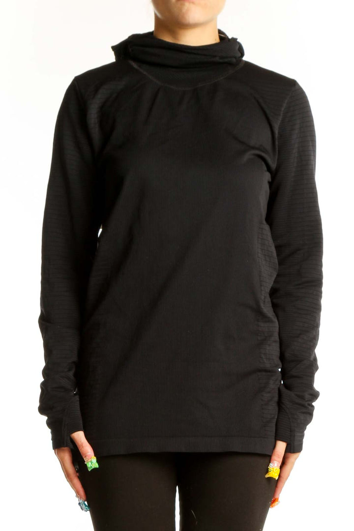 Elevate your workout wardrobe with this sleek black activewear top from Athleta. Crafted from a high-performance blend of nylon and spandex, this long-sleeved top offers both comfort and flexibility for all your fitness activities. The cowl neck design adds a touch of style, while providing extra coverage and warmth when needed.