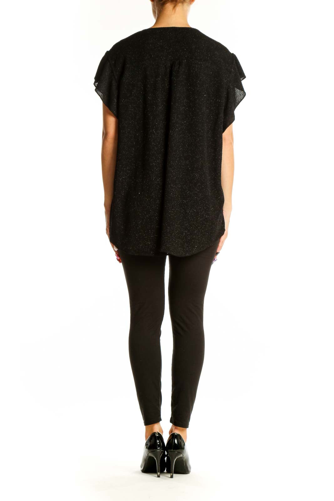 In excellent condition, this Vince Camuto top is a versatile addition to your closet. Pair it with your favorite jeans for a chic casual look, or dress it up with a skirt and heels for a night out. The sparkly black fabric adds a touch of glamour to any outfit, making this top a go-to choice for those who love to shine.