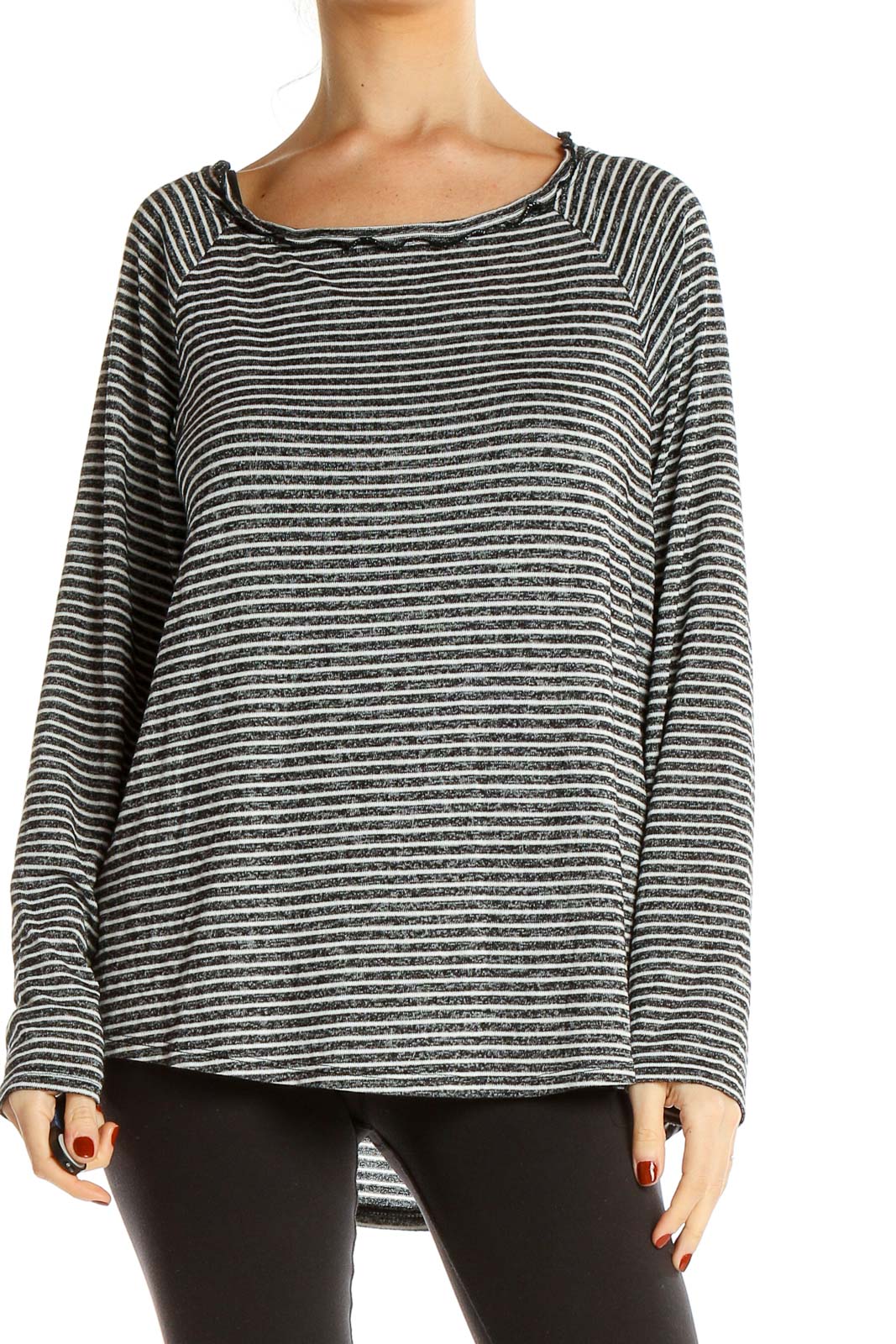 Elevate your casual wardrobe with this chic Gray Striped Long Sleeve Knit Top from Gibson. This versatile piece features a classic horizontal stripe pattern in gray and white, perfect for effortless style. The relaxed fit and raglan sleeves offer comfort and ease of movement, making it ideal for everyday wear.