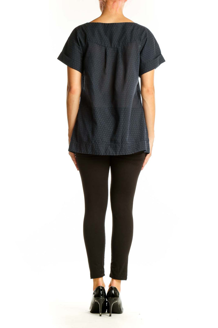 Elevate your casual wardrobe with this sophisticated black top from French Connection. Crafted from a comfortable blend of cotton and polyester, this short-sleeved piece features a subtle textured pattern that adds depth and interest to its design. The relaxed fit and boat neckline create a flattering silhouette suitable for various body types.