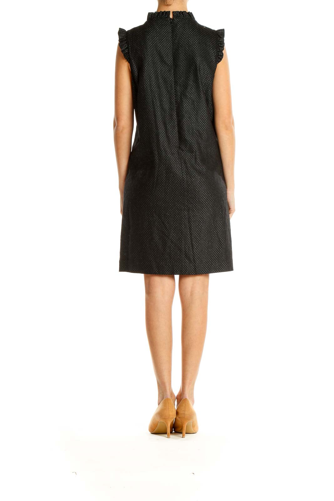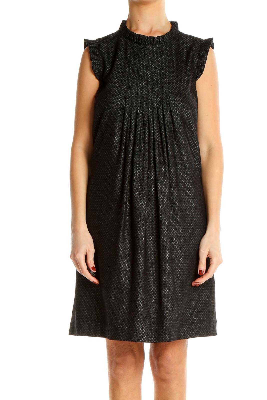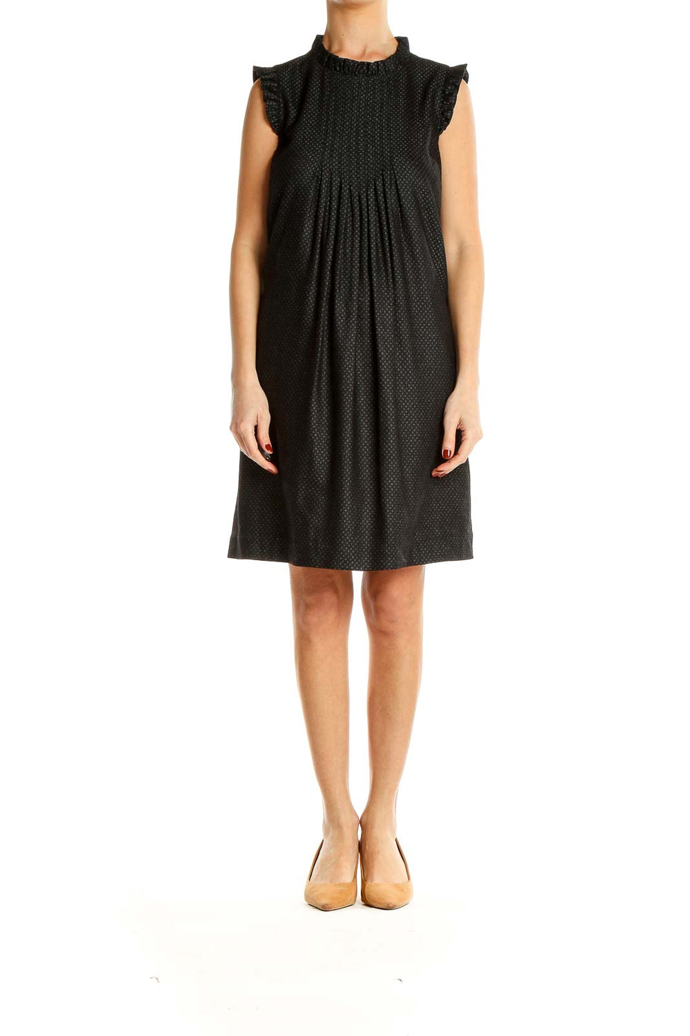 Elevate your wardrobe with this sophisticated black polka dot pleated shift dress from Tibi New York. This elegant piece features a high neckline with delicate ruffles, creating a feminine and refined look. The dress showcases a flattering pleated design that gracefully drapes from the chest, offering both style and comfort. Crafted from a luxurious blend of elastane, polyamide, viscose, and wool, this dress ensures a perfect fit and all-day comfort. The sleeveless design with subtle ruffle details on the armholes adds a touch of playfulness to the overall classic silhouette. Perfect for both office wear and evening events, this versatile dress can be easily dressed up or down with the right accessories. In excellent condition, this Tibi New York dress is a timeless addition to any fashion-forward wardrobe.