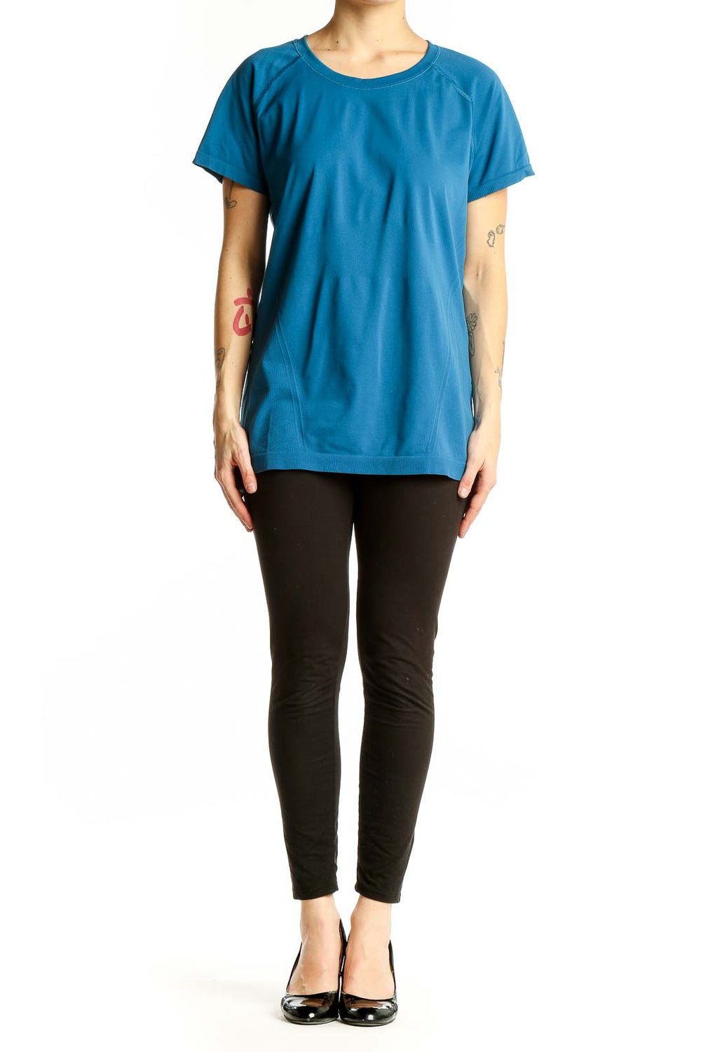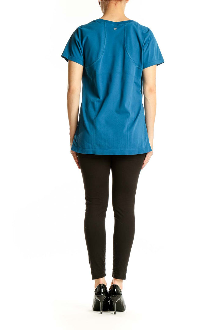 Elevate your workout wardrobe with this vibrant blue performance top from Athleta. Designed for comfort and style, this short-sleeve activewear piece is perfect for your gym sessions, yoga classes, or casual outings. The raglan sleeves offer enhanced mobility, while the scoop neckline adds a feminine touch. Made with Athleta's signature performance fabric, it wicks away moisture to keep you cool and dry during intense workouts. The excellent condition of this size Large top ensures you'll look and feel great. With a generous bust measurement of 38", a length of 26", and a waist of 36", it provides a comfortable, flattering fit for various body types. Whether you're hitting the treadmill or running errands, this Athleta top is your go-to for both function and fashion.