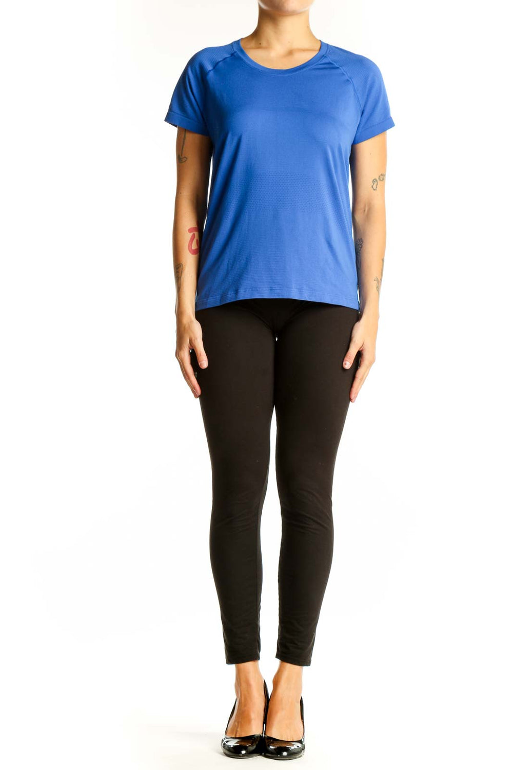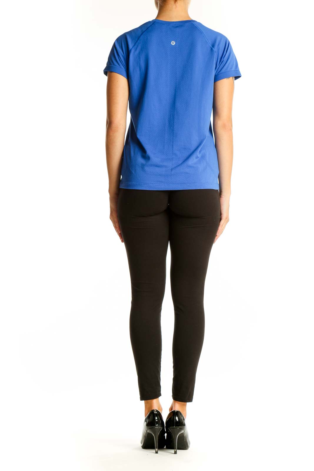 Versatile and stylish, this Lululemon t-shirt transitions seamlessly from the gym to casual outings. Its solid blue color is both eye-catching and easy to pair with your favorite workout bottoms. Experience the perfect blend of fashion and function with this essential athletic wear piece.