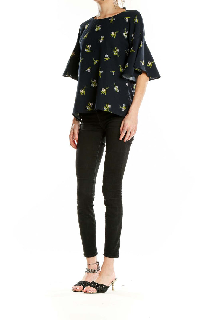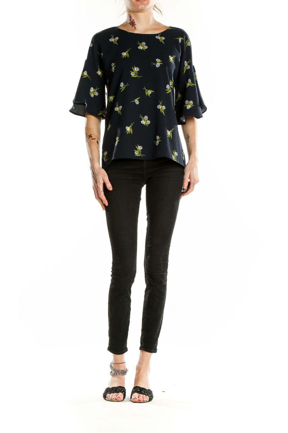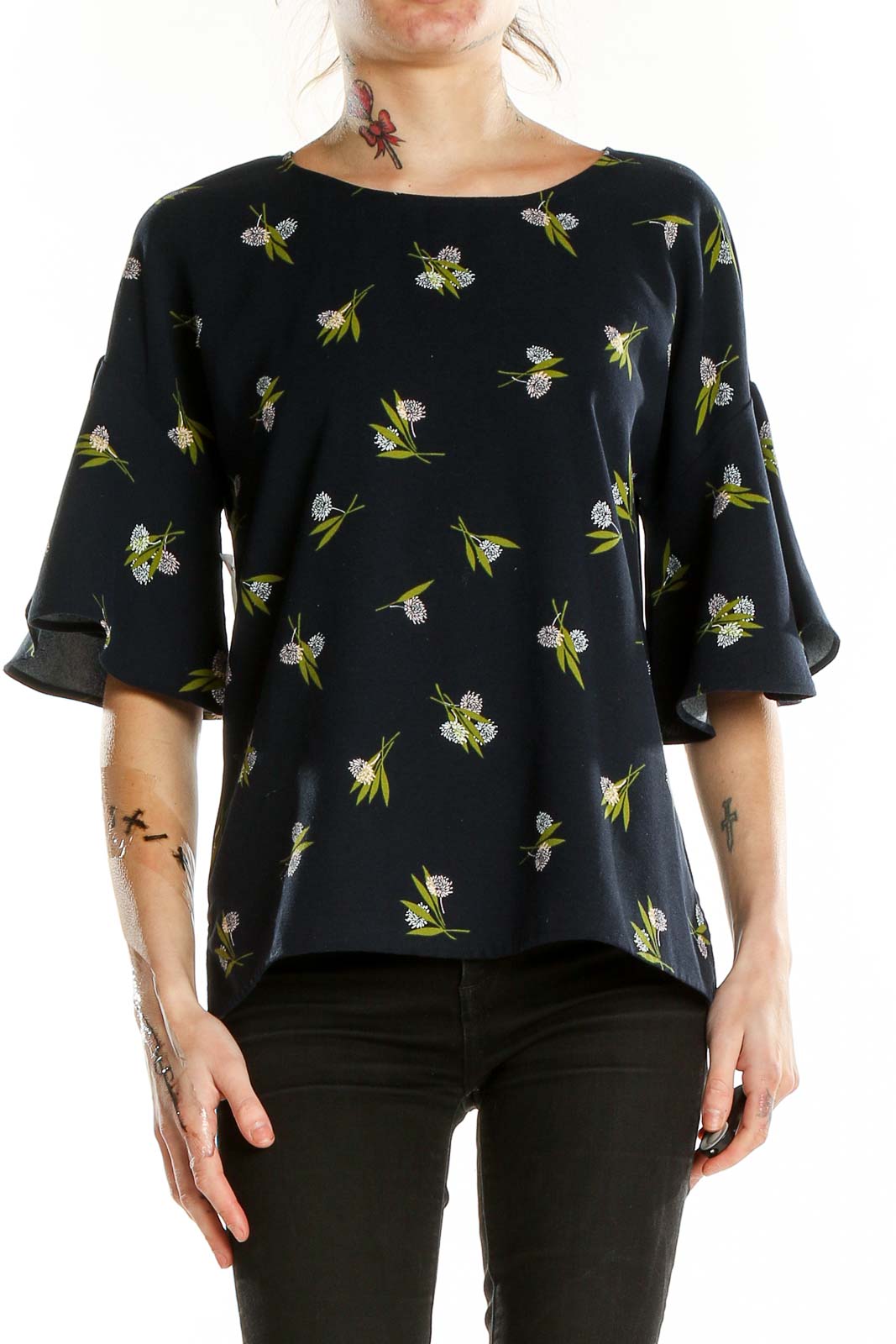 Elevate your wardrobe with this charming black polyester blouse from Ann Taylor. Featuring a delicate floral print in white and green, this top exudes feminine elegance with a modern twist. The standout bell sleeves add a touch of drama and movement to the silhouette, making it perfect for both office wear and casual outings.