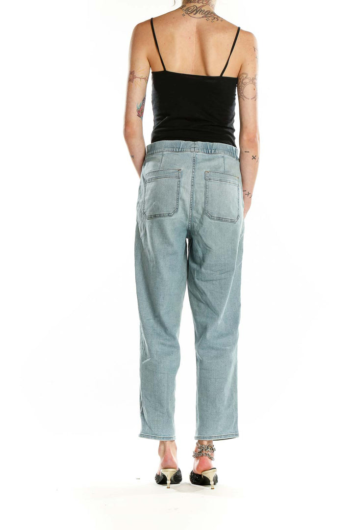 Step into casual comfort with these light blue relaxed fit denim jeans from Madewell. Crafted from a soft blend of cotton, elastane, and polyester, these jeans offer both durability and flexibility for all-day wear. The relaxed silhouette provides a laid-back look while maintaining a flattering fit. Large front patch pockets add a utilitarian touch, perfect for carrying small essentials. The light wash gives these jeans a versatile, easygoing vibe that pairs well with any casual ensemble. With a mid-rise waist and ankle-length cut, these jeans are ideal for showcasing your favorite footwear. In good condition, these Madewell jeans are a wardrobe staple that combines style and comfort effortlessly.