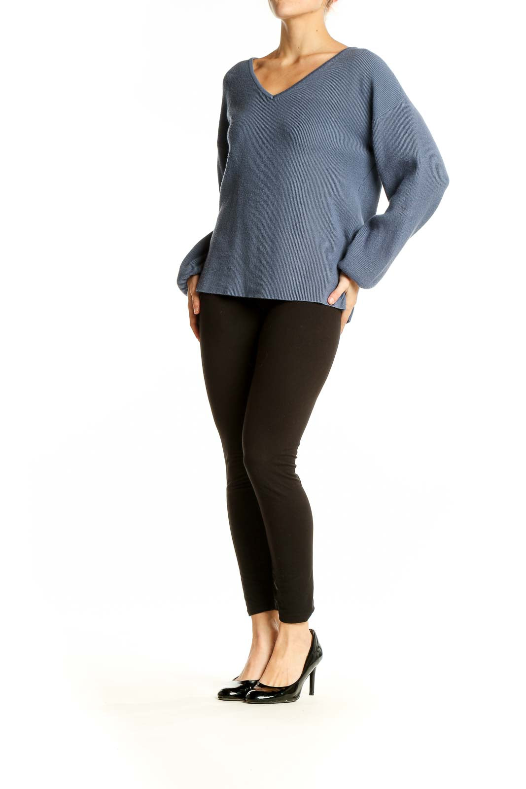 Elevate your casual wardrobe with this sophisticated blue ribbed sweater from SilkRoll. Crafted from a luxurious blend of nylon and viscose, this knit piece offers both comfort and style. The V-neckline adds a touch of elegance, while the ribbed texture provides visual interest and a flattering silhouette. With its relaxed fit and dropped shoulders, this sweater is perfect for effortless layering or wearing on its own. The versatile blue hue complements a variety of outfits, making it a go-to piece for any occasion. In good condition, this sweater is a testament to SilkRoll's commitment to quality and timeless design. Whether paired with jeans for a casual look or dressed up with a skirt, this sweater is sure to become a favorite in your wardrobe rotation.
