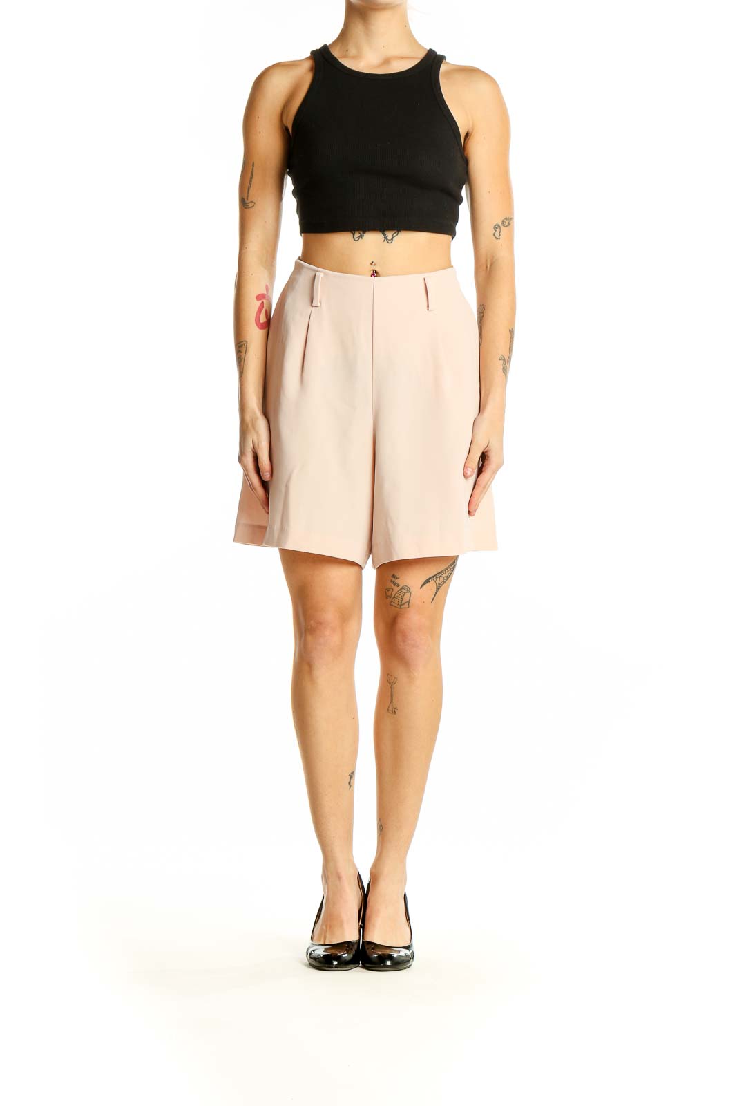 Step out in style with these elegant blush-colored dress shorts from Uniqlo. Crafted from a comfortable blend of polyester and spandex, these shorts offer both sophistication and ease of movement. The high-waisted design flatters your figure, while the pleated front adds a touch of refinement. Perfect for warm weather occasions, these shorts feature a tailored fit with a 18" length, ideal for showing off your legs. The soft, lightweight fabric ensures all-day comfort, whether you're at the office or enjoying a weekend brunch. With a 26" waist and 32" hip measurement, these XS-sized shorts are designed to sit perfectly on a petite frame. In excellent condition, these versatile shorts are a must-have addition to your summer wardrobe.