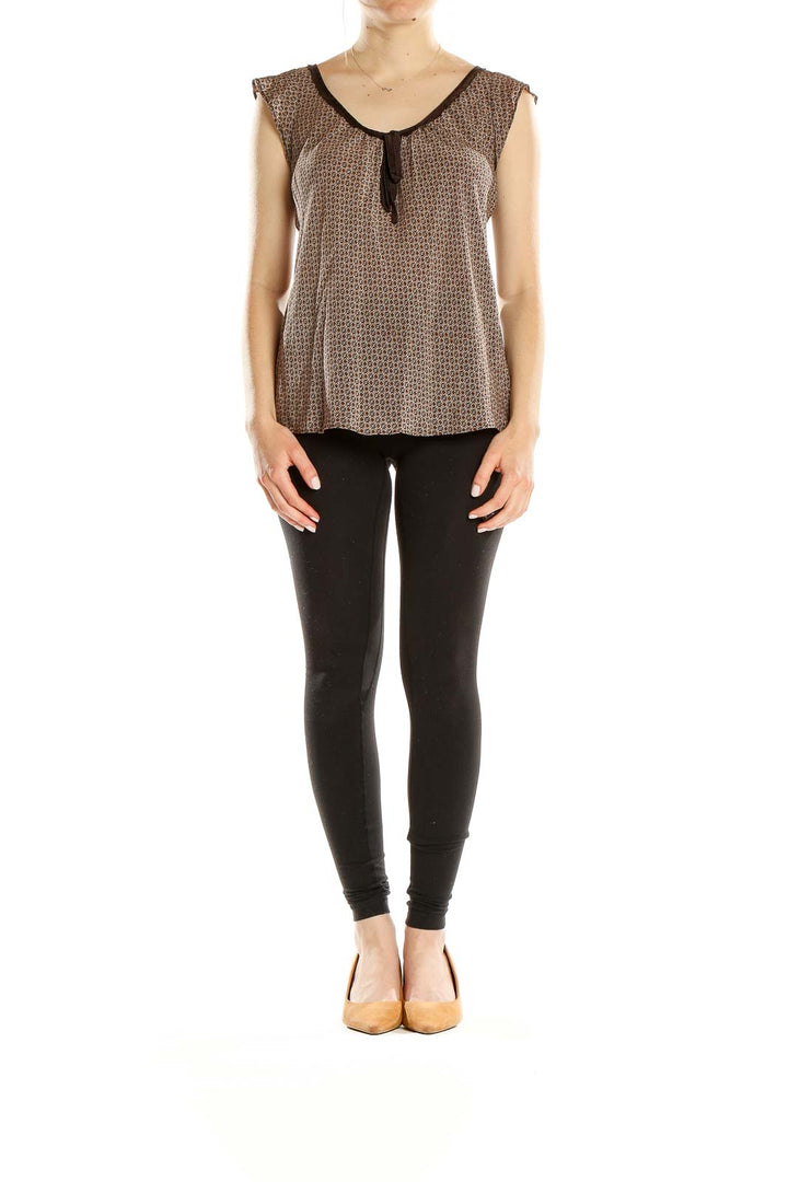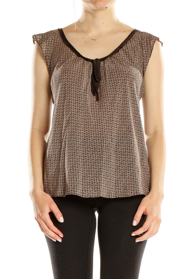 Elevate your casual wardrobe with this charming brown patterned sleeveless blouse from Banana Republic. The delicate geometric print in shades of brown and beige creates a sophisticated yet versatile look. The lightweight fabric drapes beautifully, offering both comfort and style for any occasion.