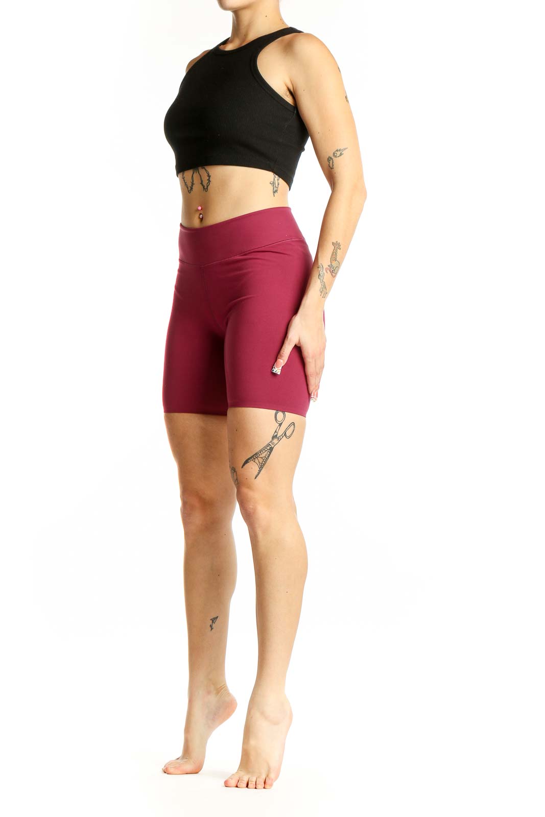 Elevate your workout wardrobe with these sleek burgundy compression shorts from Uniqlo. Crafted from a high-performance blend of polyester and spandex, these shorts offer the perfect balance of comfort and support for all your athletic endeavors. The high-waisted design provides excellent coverage and a flattering silhouette, while the form-fitting cut ensures unrestricted movement during intense workouts.