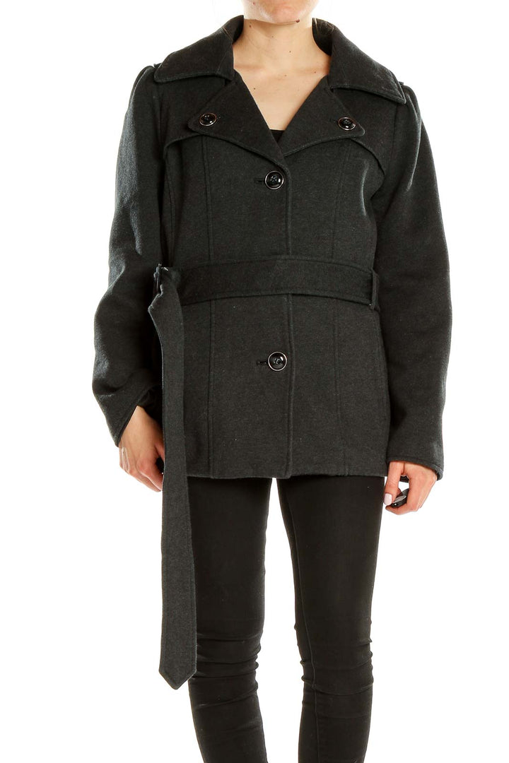 Elevate your winter wardrobe with this sophisticated charcoal gray peacoat from Kenneth Cole Reaction. This stylish coat features a classic double-breasted design with large buttons, perfect for making a statement on chilly days. The wide collar and lapels add a touch of elegance, while the belted waist allows for a customized fit, accentuating your silhouette.