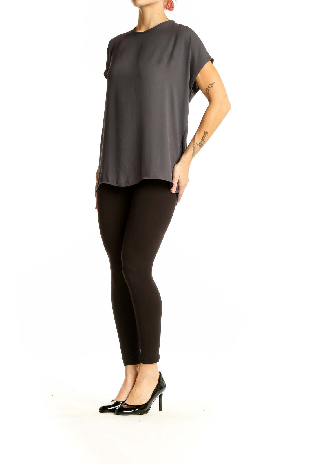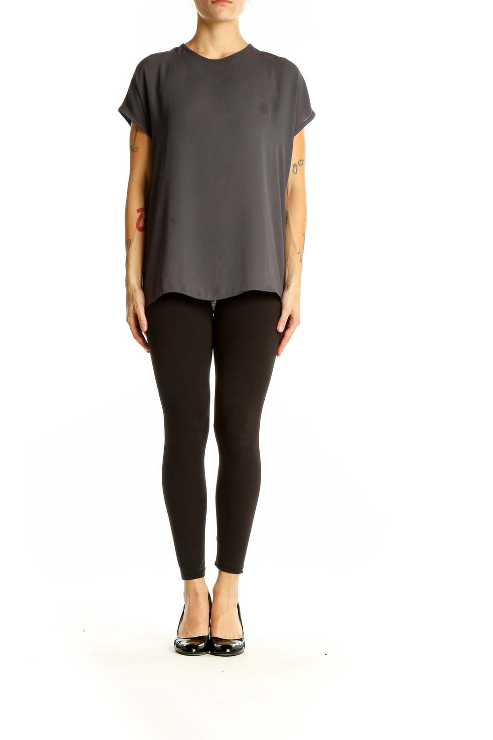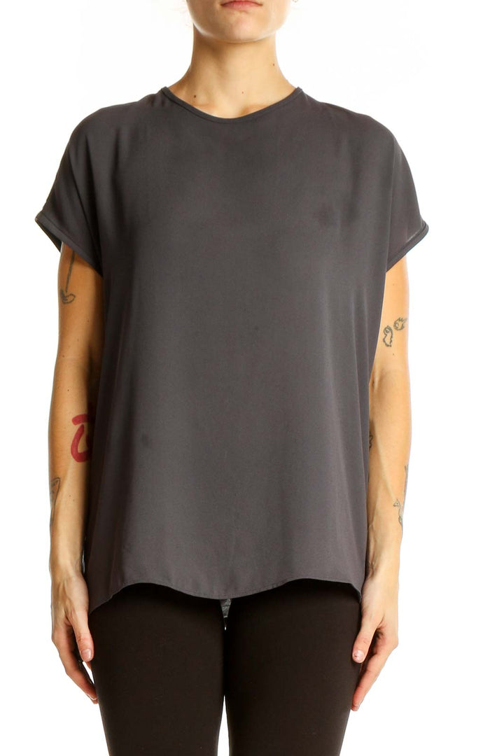 Elevate your casual wardrobe with this elegant gray blouse from LOFT. Crafted from a soft blend of polyester and rayon, this top offers both comfort and style. The flowy silhouette features short, rolled sleeves and a relaxed fit that drapes beautifully over the body. With its versatile design, this blouse can easily transition from office to evening wear. The excellent condition of this piece ensures it looks as good as new. Its generous measurements (Bust 42", Waist 38", Hips 38", Length 27") provide a comfortable fit for a range of body types. The subtle sheen of the fabric adds a touch of sophistication, making this LOFT blouse a must-have addition to your closet.