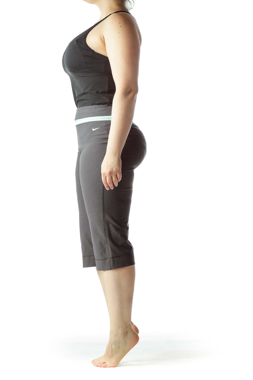 Elevate your workout wardrobe with these sleek gray capri yoga pants from Nike. Designed for comfort and performance, these pants feature a flattering high-waisted fit with a contrasting mint and white waistband that adds a pop of color. The stretchy, moisture-wicking fabric hugs your curves while providing excellent range of motion for all your yoga poses or gym sessions. With a length that hits just below the knee, these capris are perfect for staying cool during intense workouts. The excellent condition of these pants ensures they'll be a long-lasting addition to your activewear collection. Whether you're hitting the yoga studio or running errands, these versatile Nike capris will keep you looking stylish and feeling comfortable all day long.