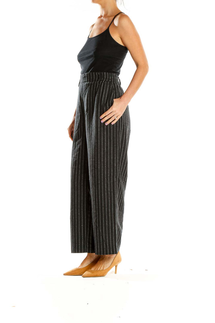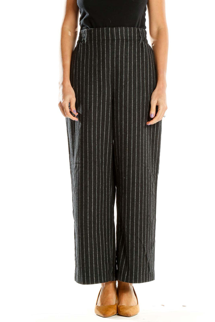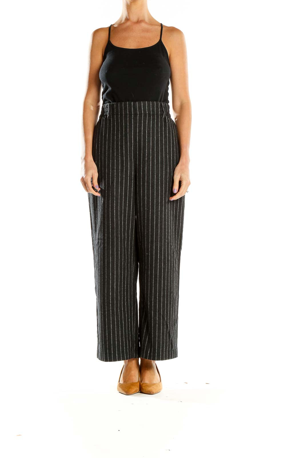 Step into sophistication with these elegant gray pinstriped wide-leg trousers from Wilfred. Crafted with a high-waisted design, these pants offer both comfort and style for the modern woman. The classic pinstripe pattern in light gray against a charcoal background adds a touch of timeless elegance to your wardrobe.