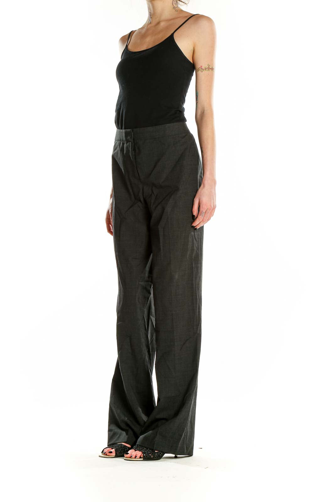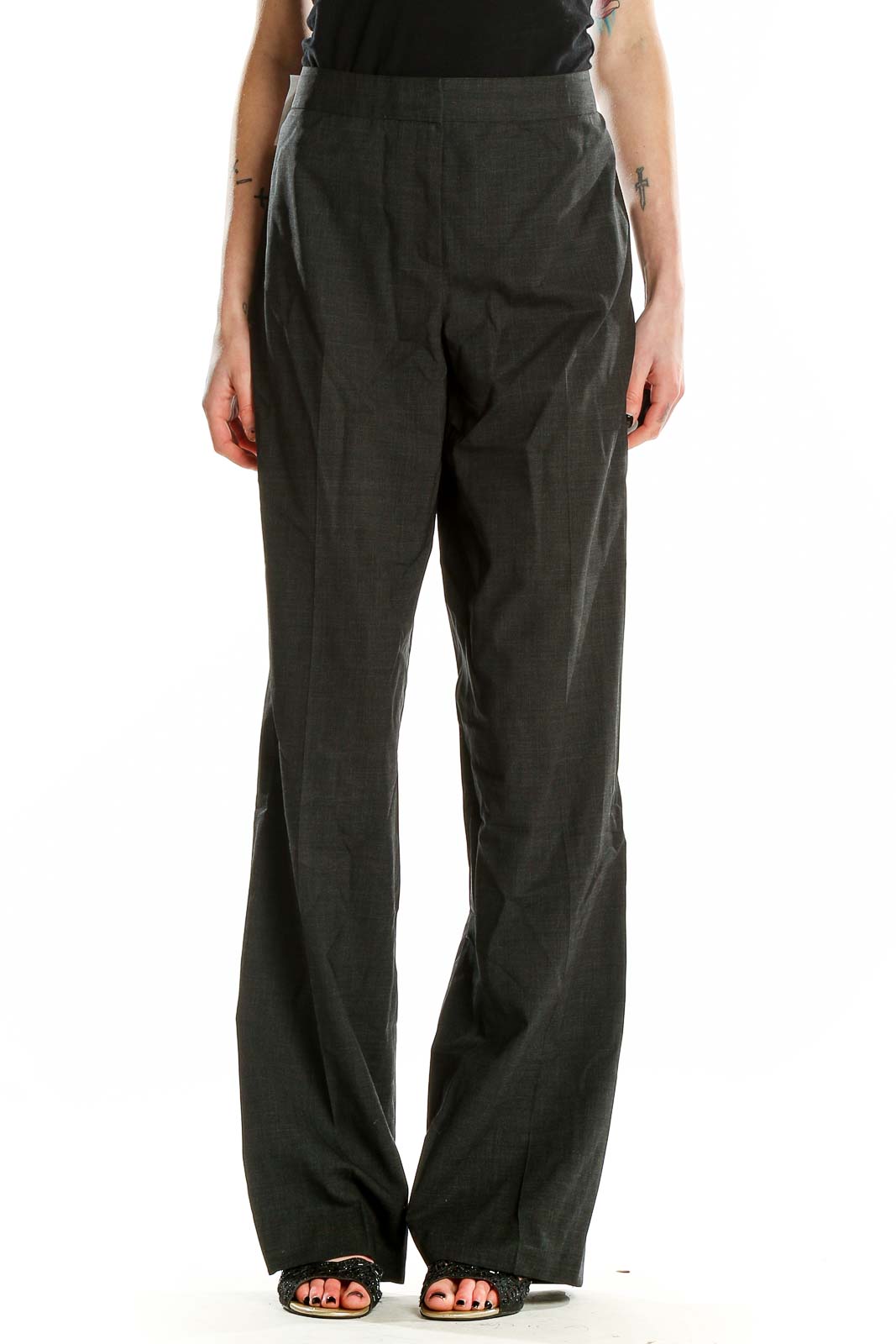Step into sophistication with these charcoal gray wide-leg trousers from Lafayette 148 New York. Crafted from a luxurious blend of virgin wool and elastane, these pants offer both comfort and elegance. The wide-leg silhouette provides a flattering drape that elongates your figure, while the high-waisted design accentuates your curves. Perfect for the office or evening events, these versatile trousers feature a smooth, flat front and a sleek finish. The excellent condition speaks to the quality of both the materials and craftsmanship, ensuring these pants will be a lasting addition to your wardrobe. With measurements of 32" waist, 38" hips, and 31" length, they offer a tailored fit that moves with you throughout the day.