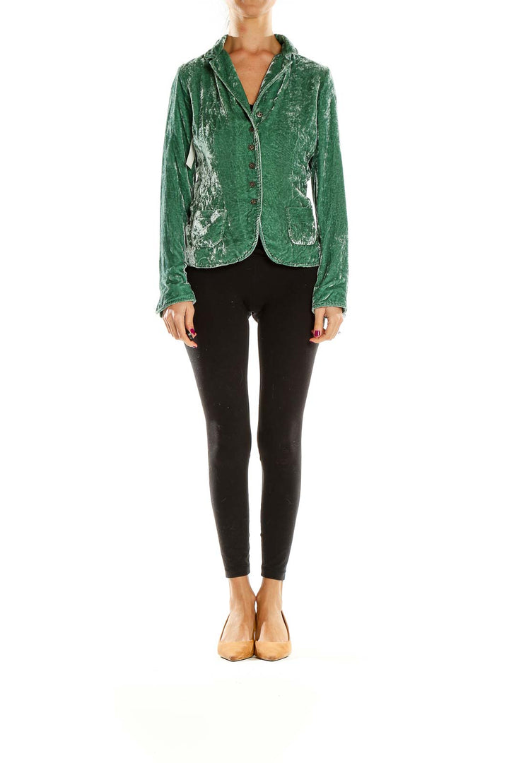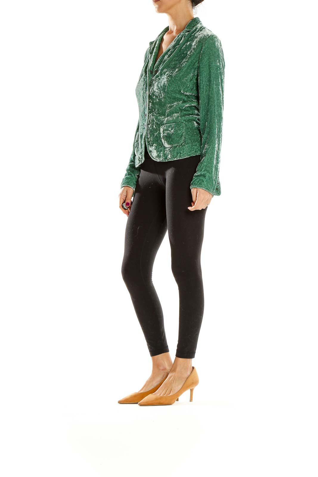 Elevate your style with this luxurious green velvet blazer jacket from Elie Tahari. This exquisite piece showcases a rich, emerald green hue that catches the light beautifully, adding a touch of sophistication to any ensemble. The soft, plush velvet fabric offers both comfort and elegance, perfect for special occasions or adding a glamorous touch to your everyday look.