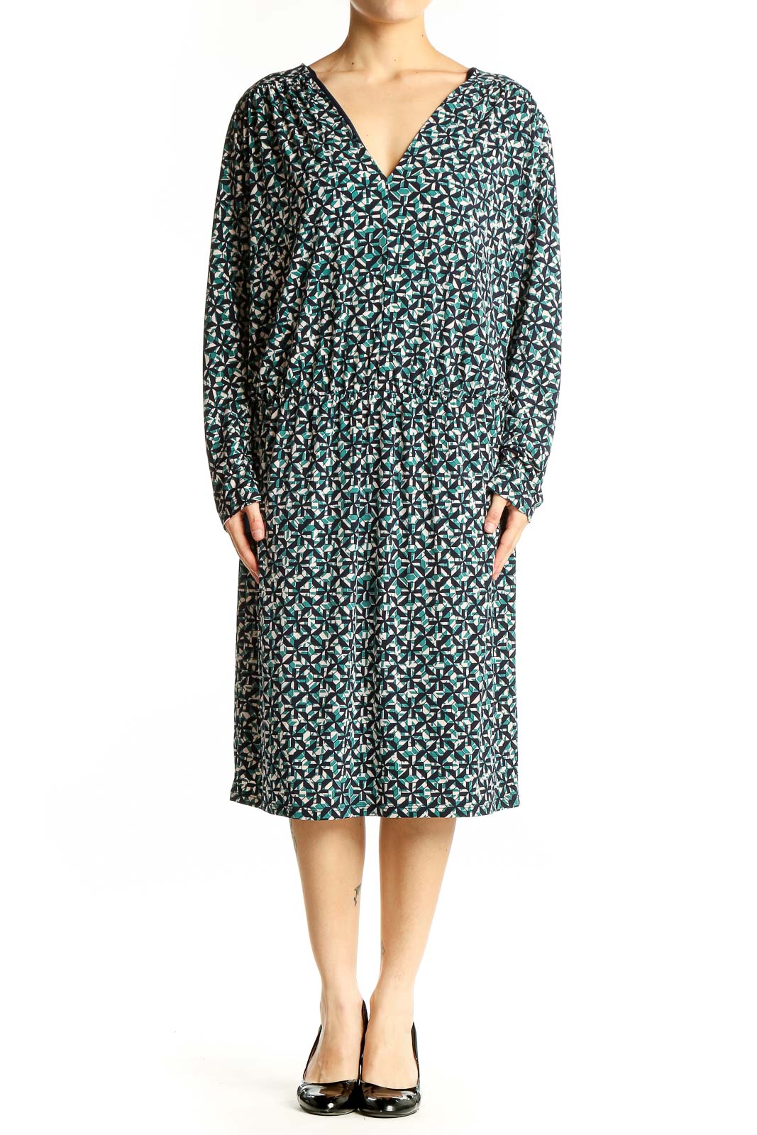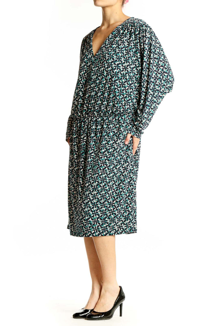 Green Floral Print V-Neck Midi Dress