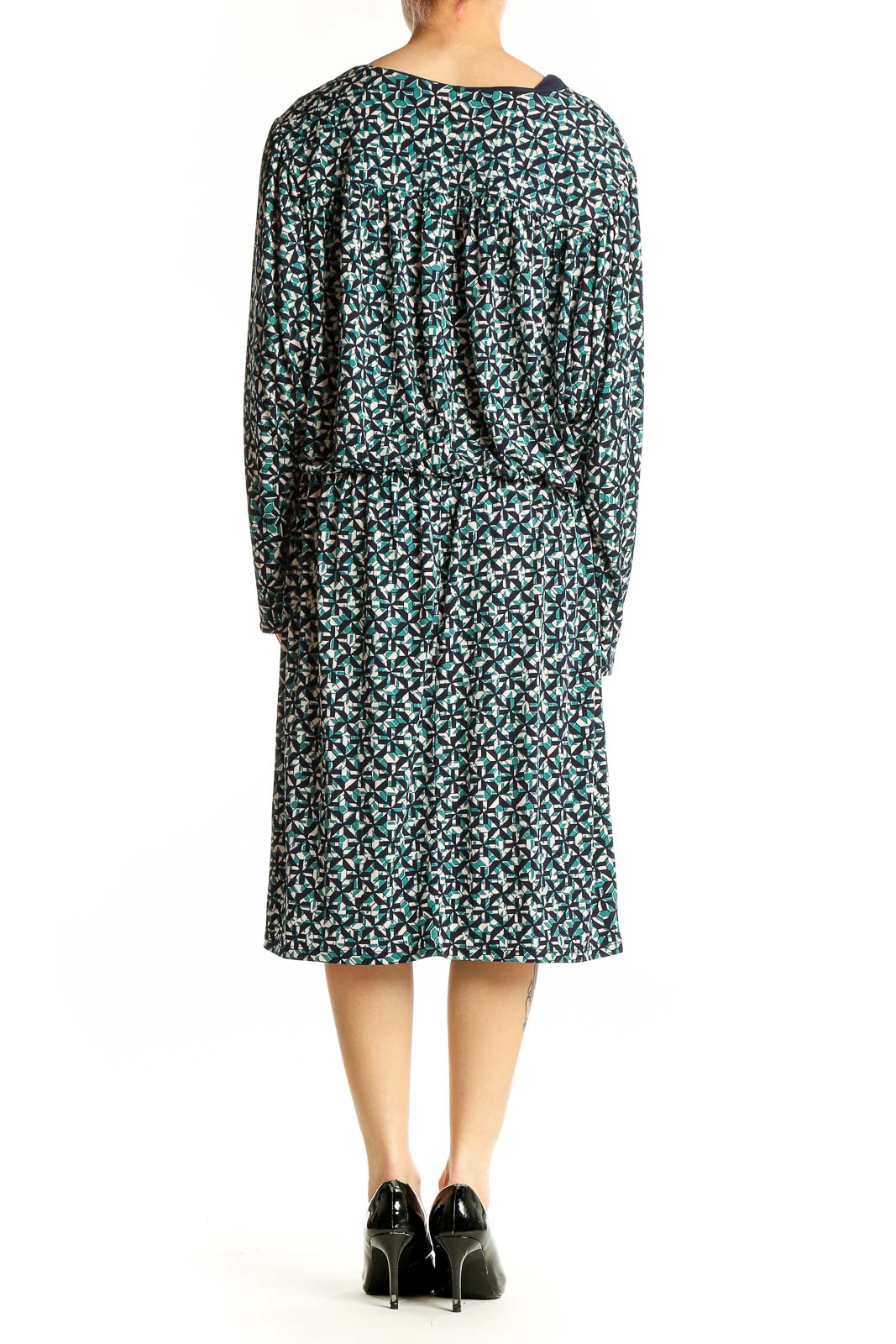 Make a stylish statement with this elegant green floral print midi dress from London Times. The V-neck design and long sleeves create a flattering silhouette, perfect for various occasions. Crafted from a comfortable blend of polyester and spandex, this dress offers both style and ease of movement. The all-over floral pattern in shades of green, black, and white adds a touch of sophistication to your wardrobe. With its excellent condition and versatile design, this dress is ideal for both casual outings and semi-formal events. The midi length and relaxed fit make it suitable for different body types, while the measurements ensure a comfortable fit for size XXL. Elevate your look with this charming London Times dress that combines comfort and fashion effortlessly.