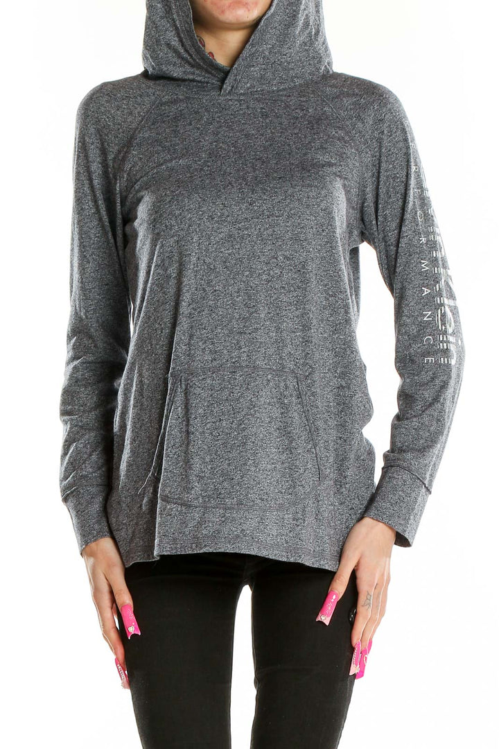 Elevate your workout wardrobe with this sleek gray hooded sweatshirt from Calvin Klein Performance. Crafted from a soft, breathable blend of cotton and polyester, this versatile piece offers both comfort and style for your active lifestyle. The heathered gray fabric gives it a modern, athletic look, while the classic hoodie design provides extra warmth and coverage.