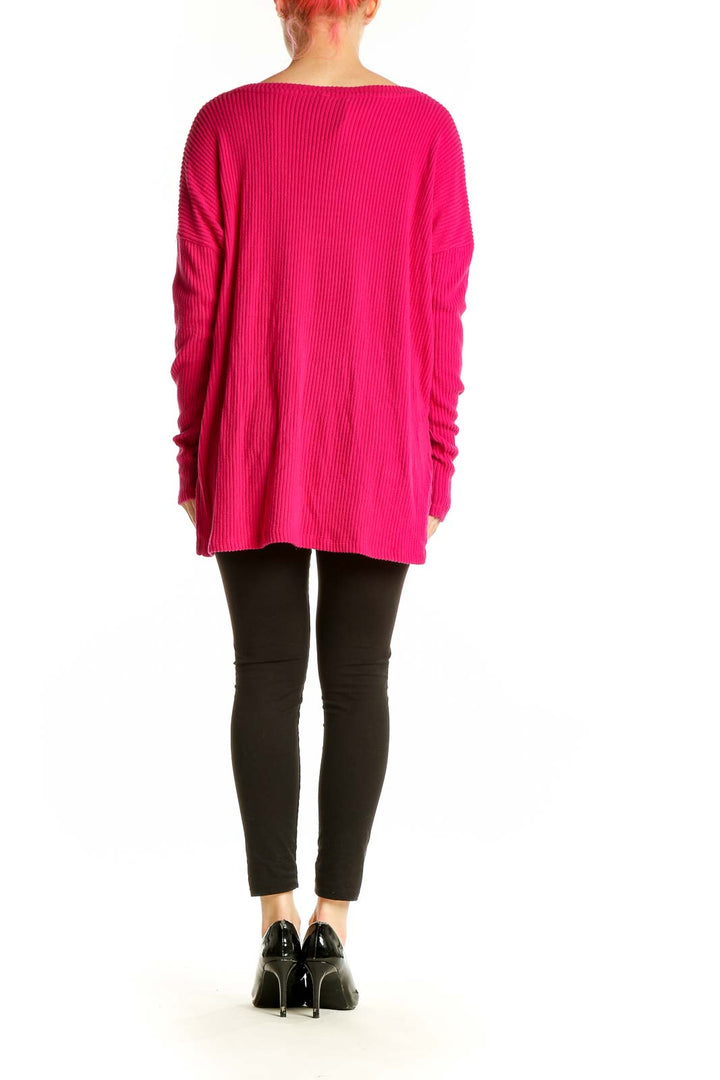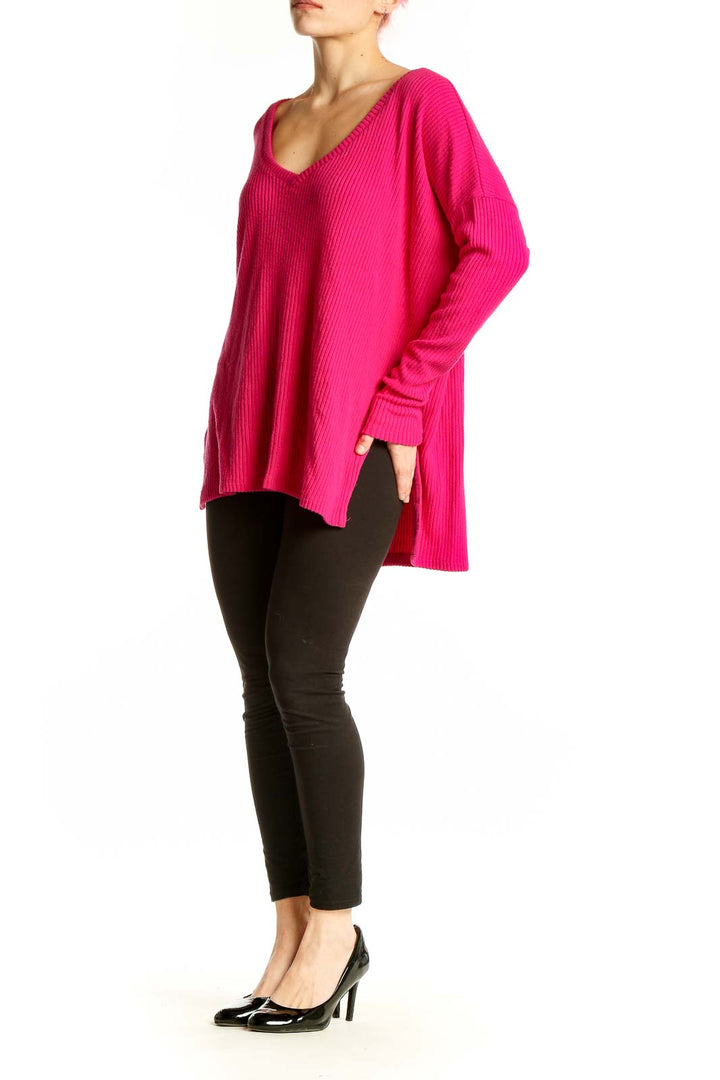 Hot Pink Oversized V-Neck Ribbed Sweater