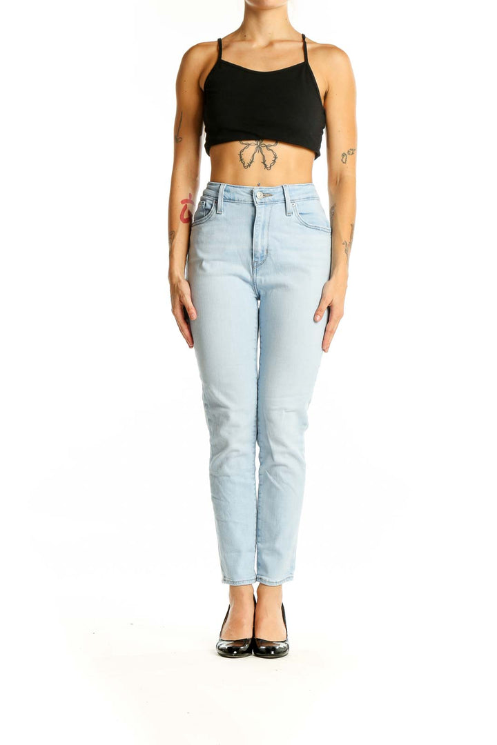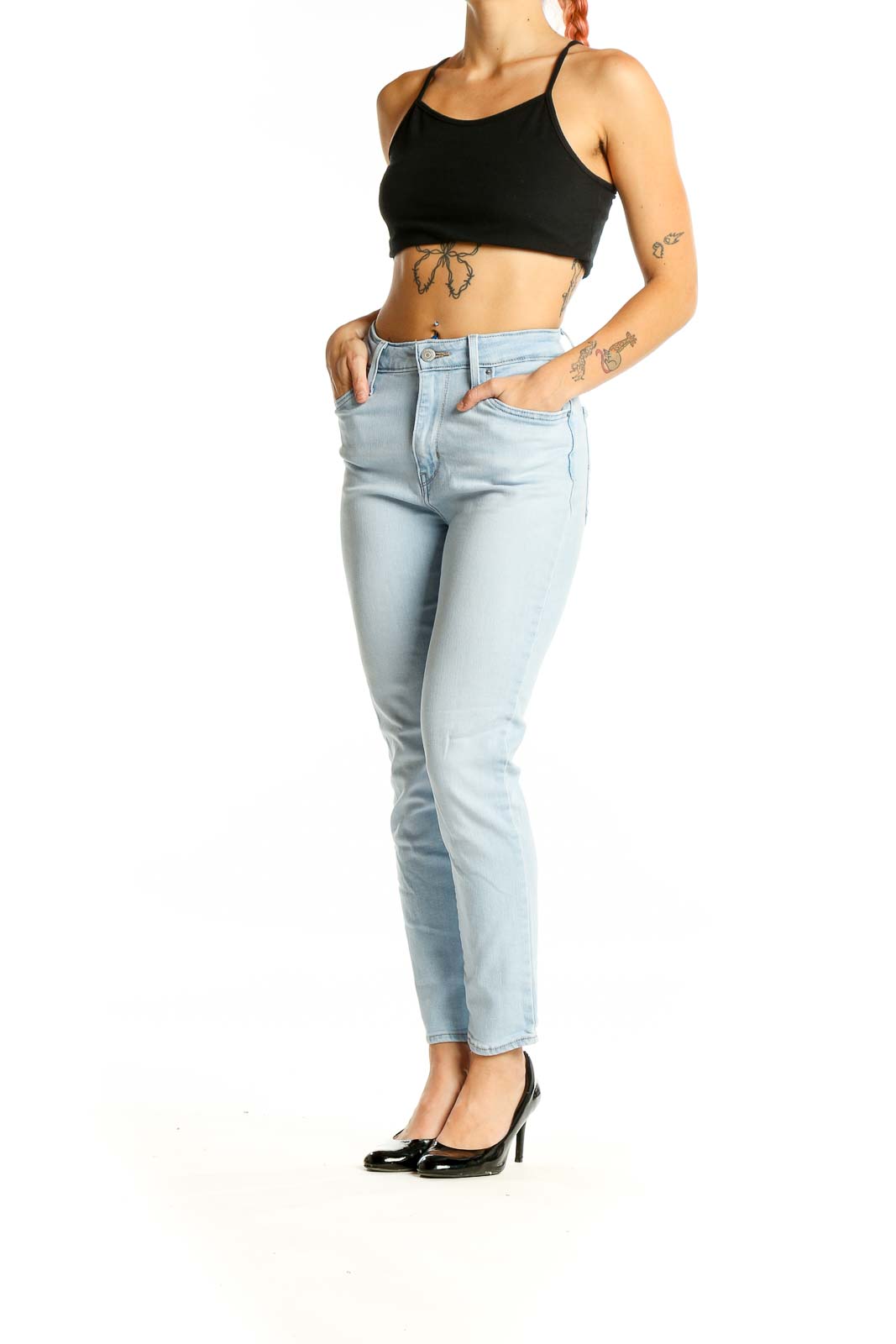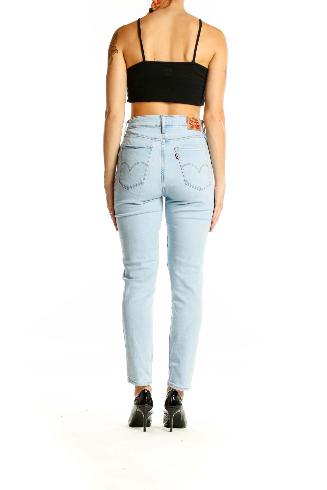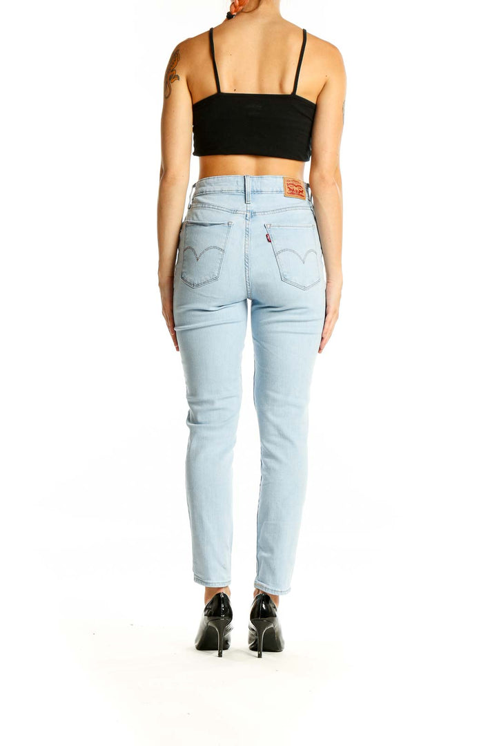 Step into timeless style with these light blue high-waisted jeans from Levi's. Crafted from a comfortable blend of cotton, polyester, and viscose, these slim-fit jeans offer both durability and flexibility for all-day wear. The classic five-pocket design and signature Levi's stitching on the back pockets add authentic denim appeal.