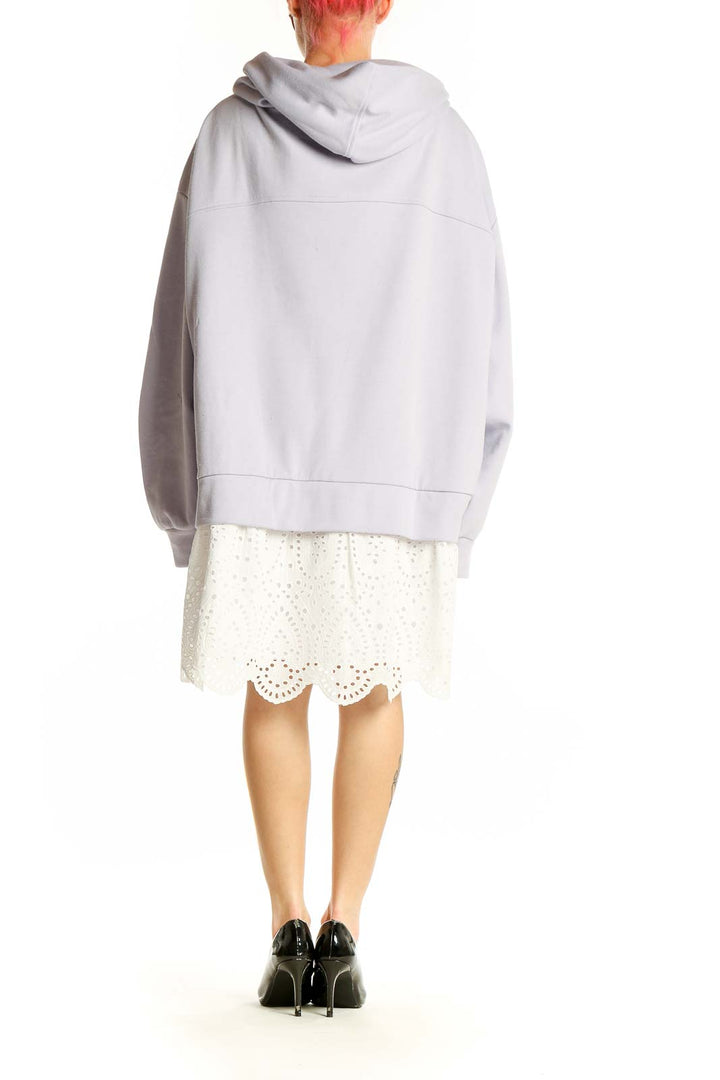Back view of Light Gray Oversized Hoodie Dress by Pilcro showing hoodie and lace skirt detail