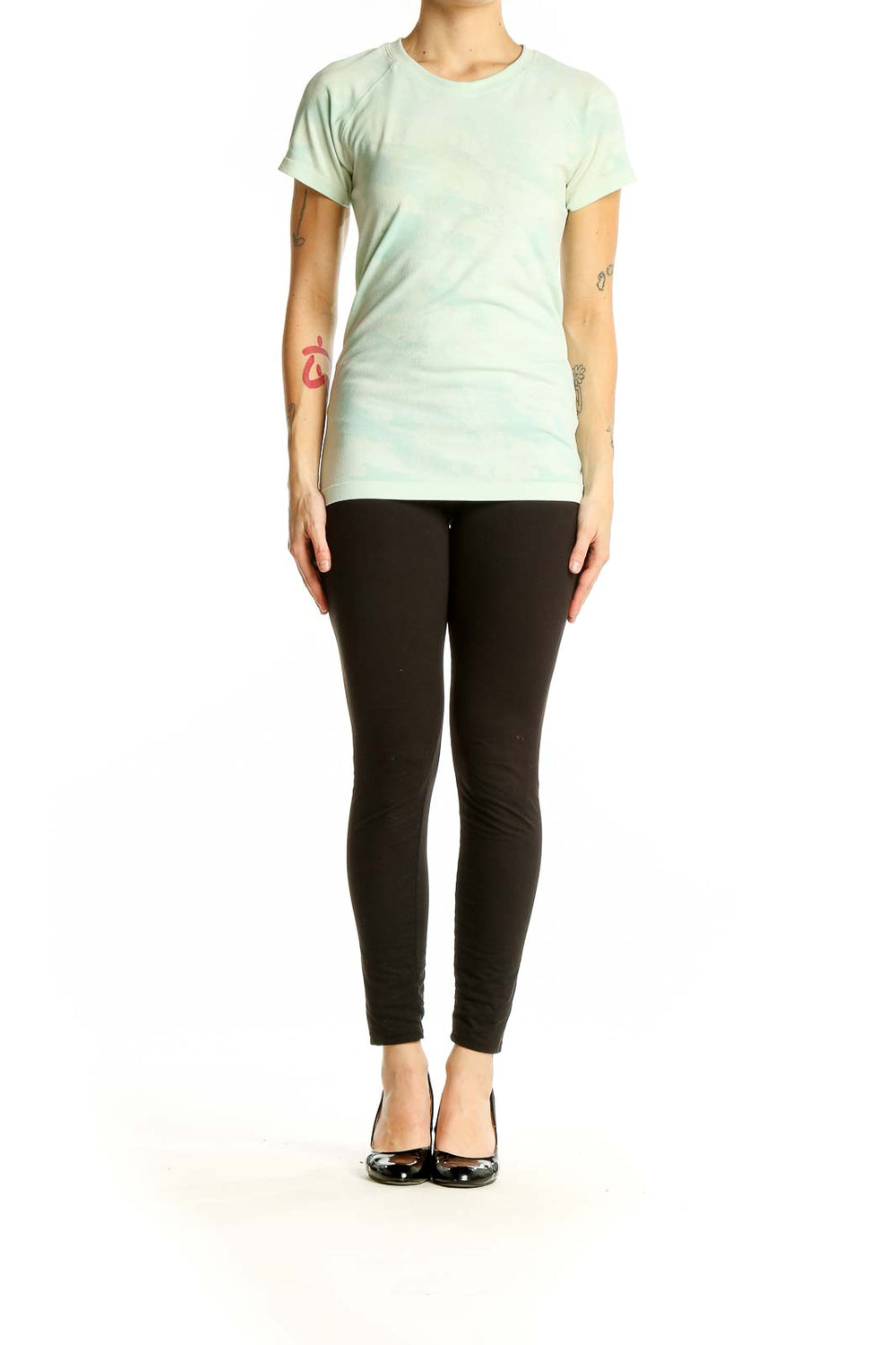 Elevate your workout wardrobe with this sleek mint green athletic performance t-shirt from Athleta. Crafted from a high-quality blend of nylon and polyester, this top offers both comfort and functionality for your active lifestyle. The lightweight fabric wicks away moisture, keeping you cool and dry during intense training sessions.